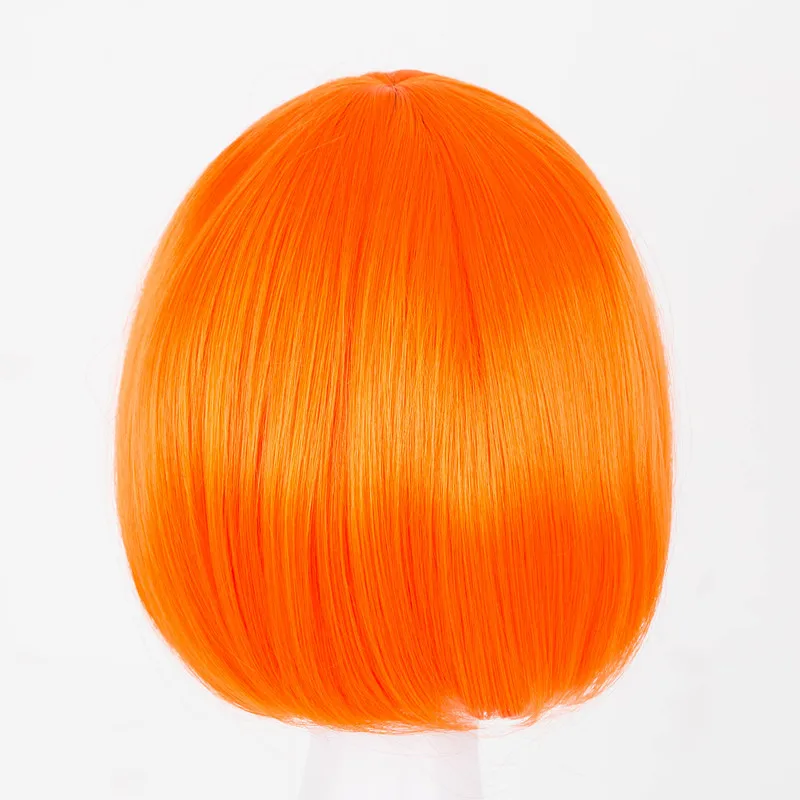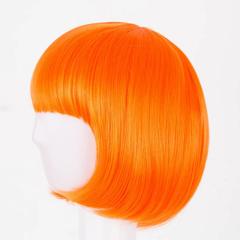 Fei-Show Short Wavy Wig Flat Bangs Bob Orange Hair Synthetic Heat Resistant Halloween Party Salon Costume Cos-play Hairpiece