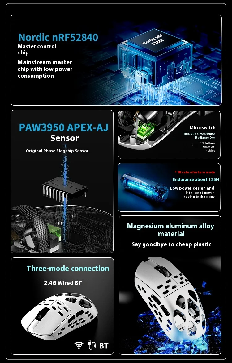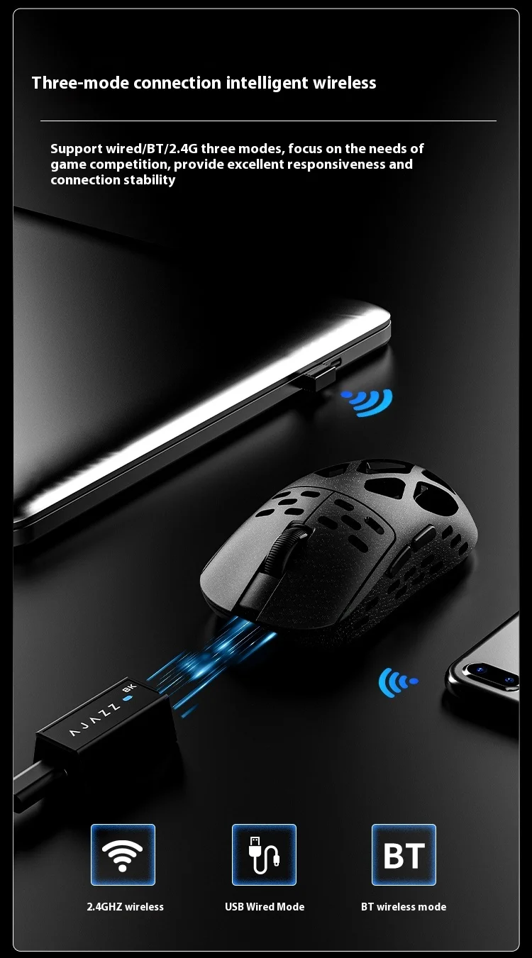Transmission mode: Tri-mode connection (2.4G/wired/BT)
