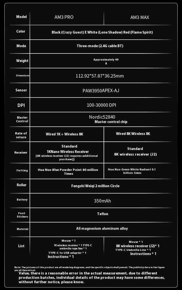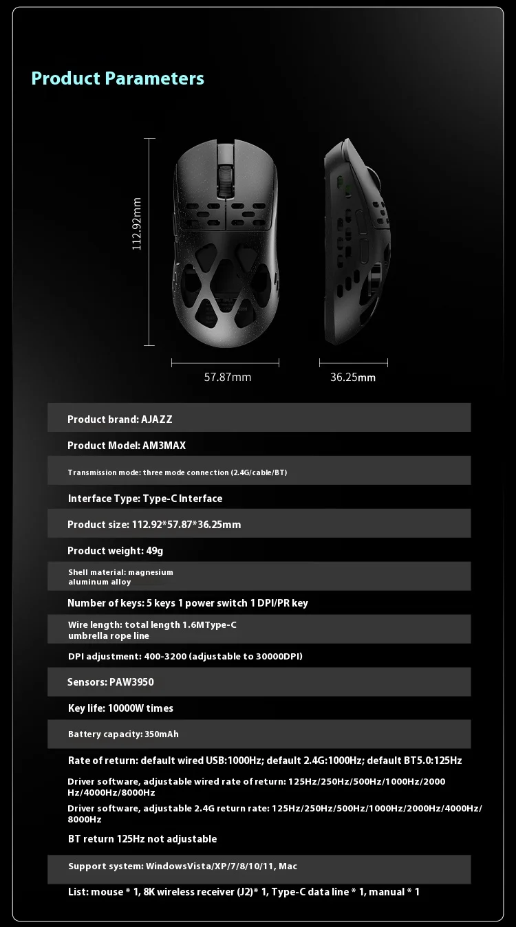 【 Pre Sale 】 Ajazz AM3 Gaming Mouse PAW3950-AJ Sensor 30000dpi 8k Polling Rate Magnesium Alloy Custom Mouse PC Accessories