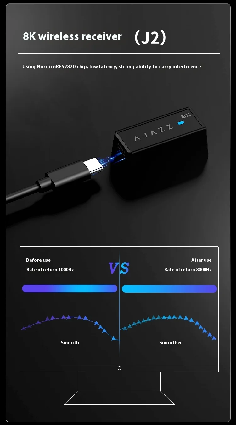 List: Mouse*1, 8K wireless receiver (J2)*1, Type-C data cable*1, manual*1