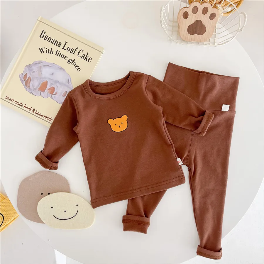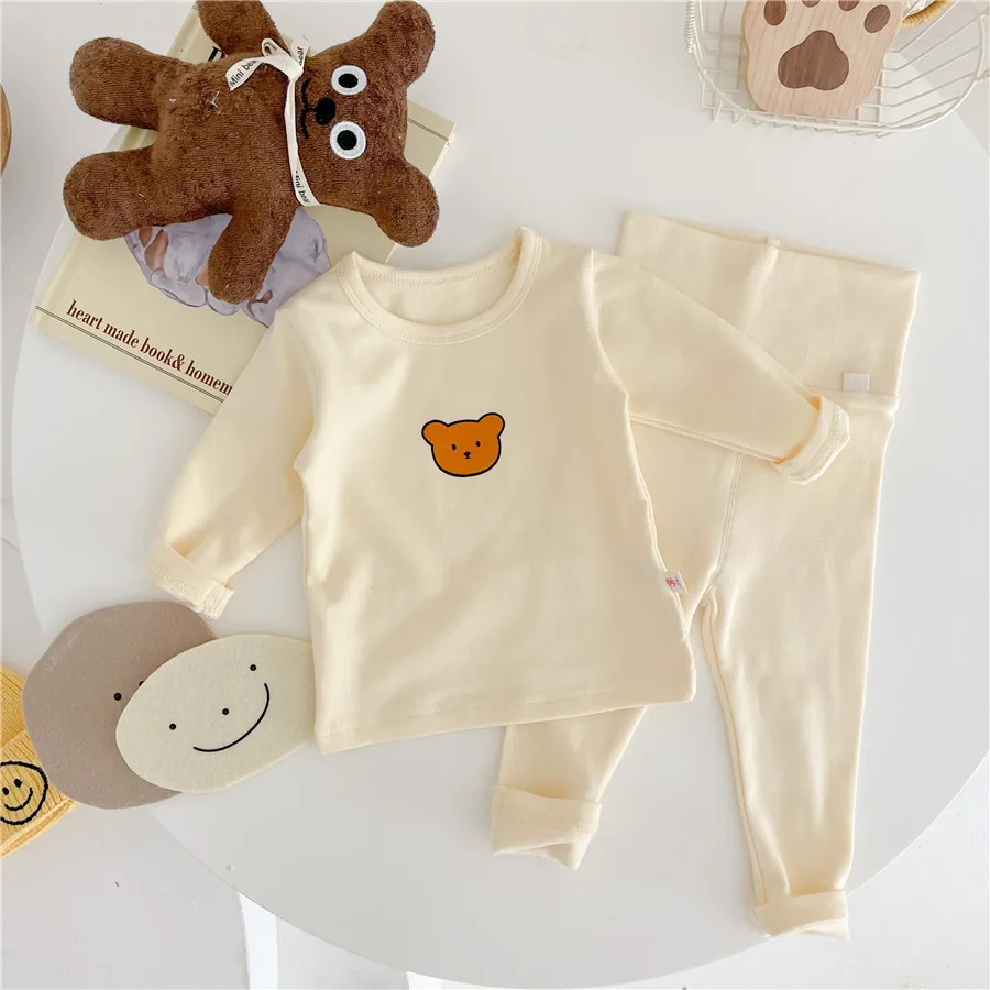 0 1 2 3years Baby Long Sleeve Suit Home Clothes Printed Bear Cute Girl Boy Cotton Pajamas 2pc/set Children’s Wear Underwear Suit