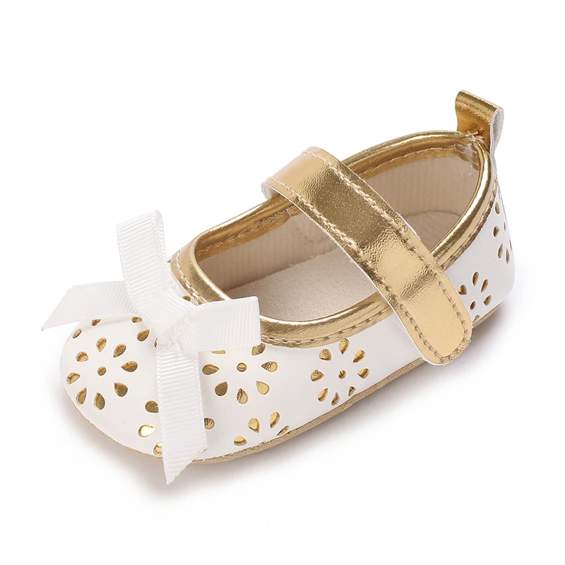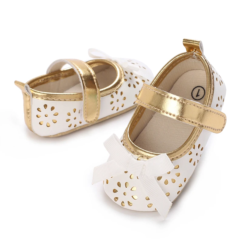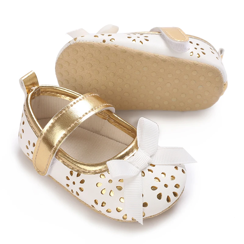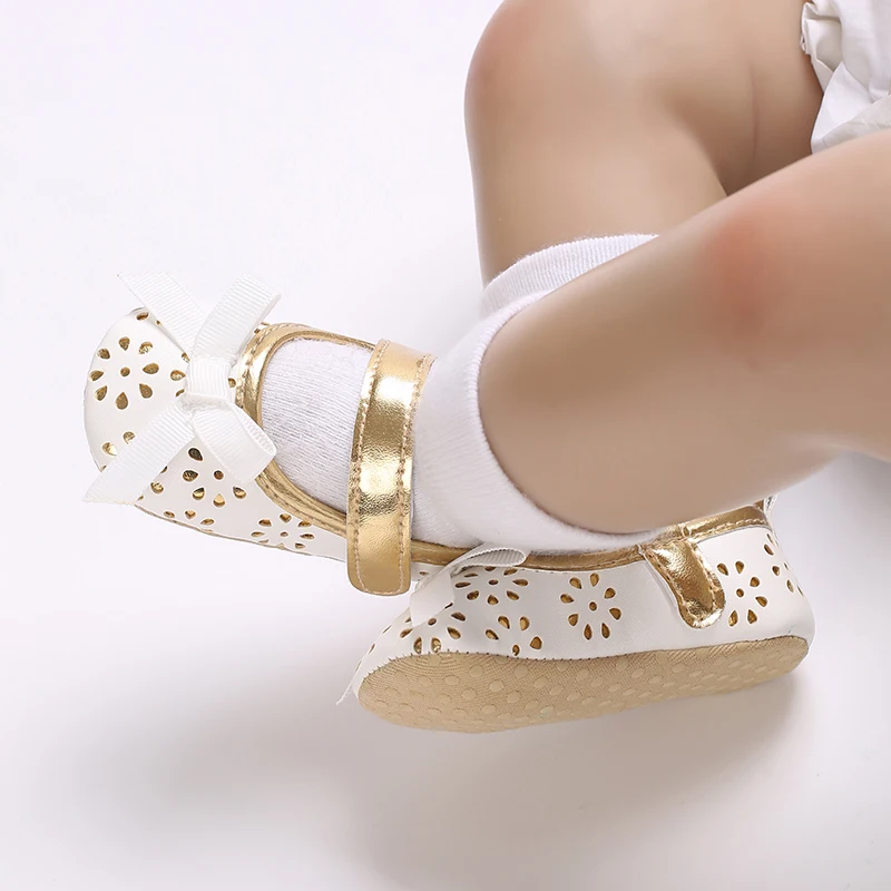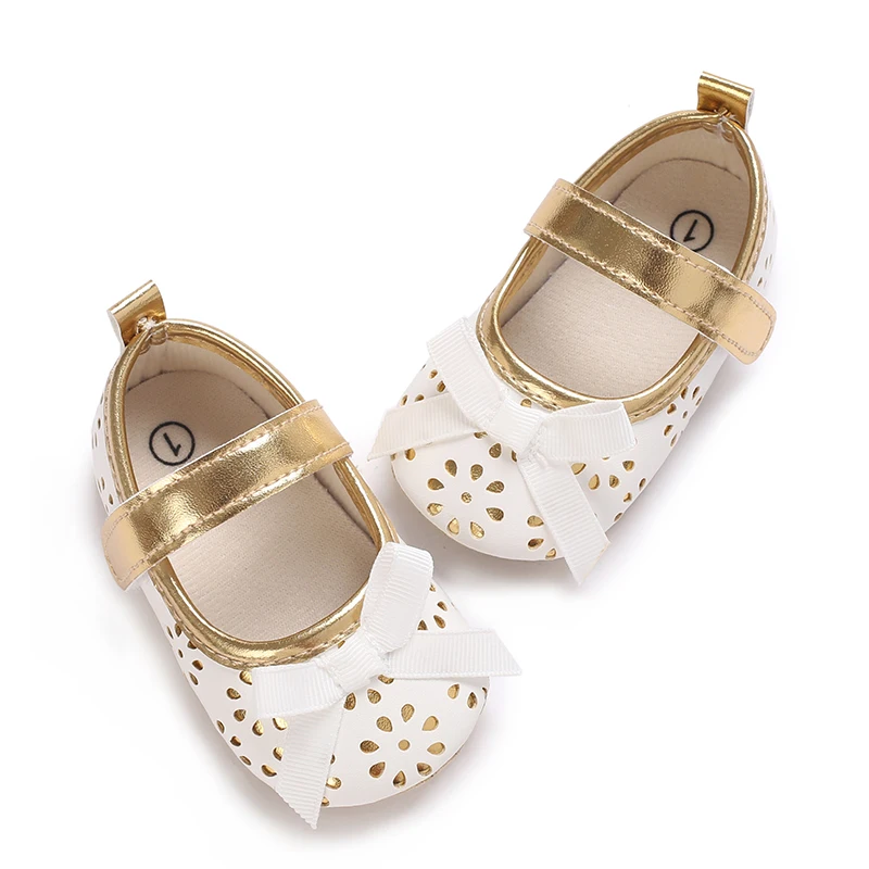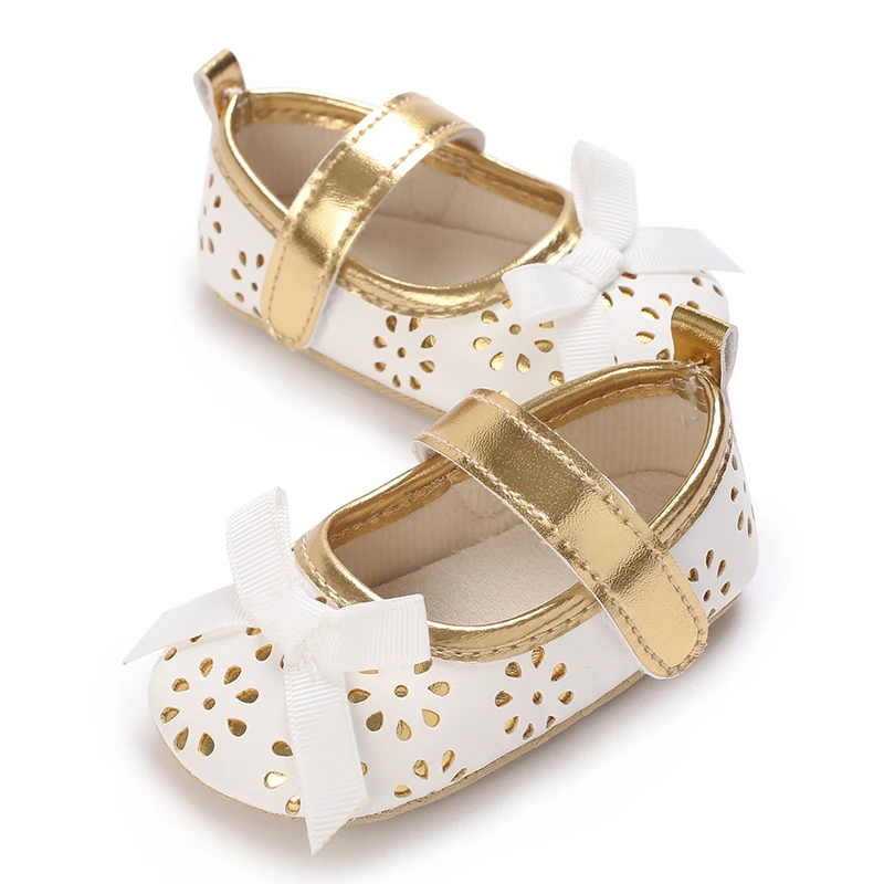 0-18M Newborn PU Bow Decoration Baby Shoes Anti Slip Cloth Sole Shoes For Girls Attending Parties Princess Shoes Step Shoes