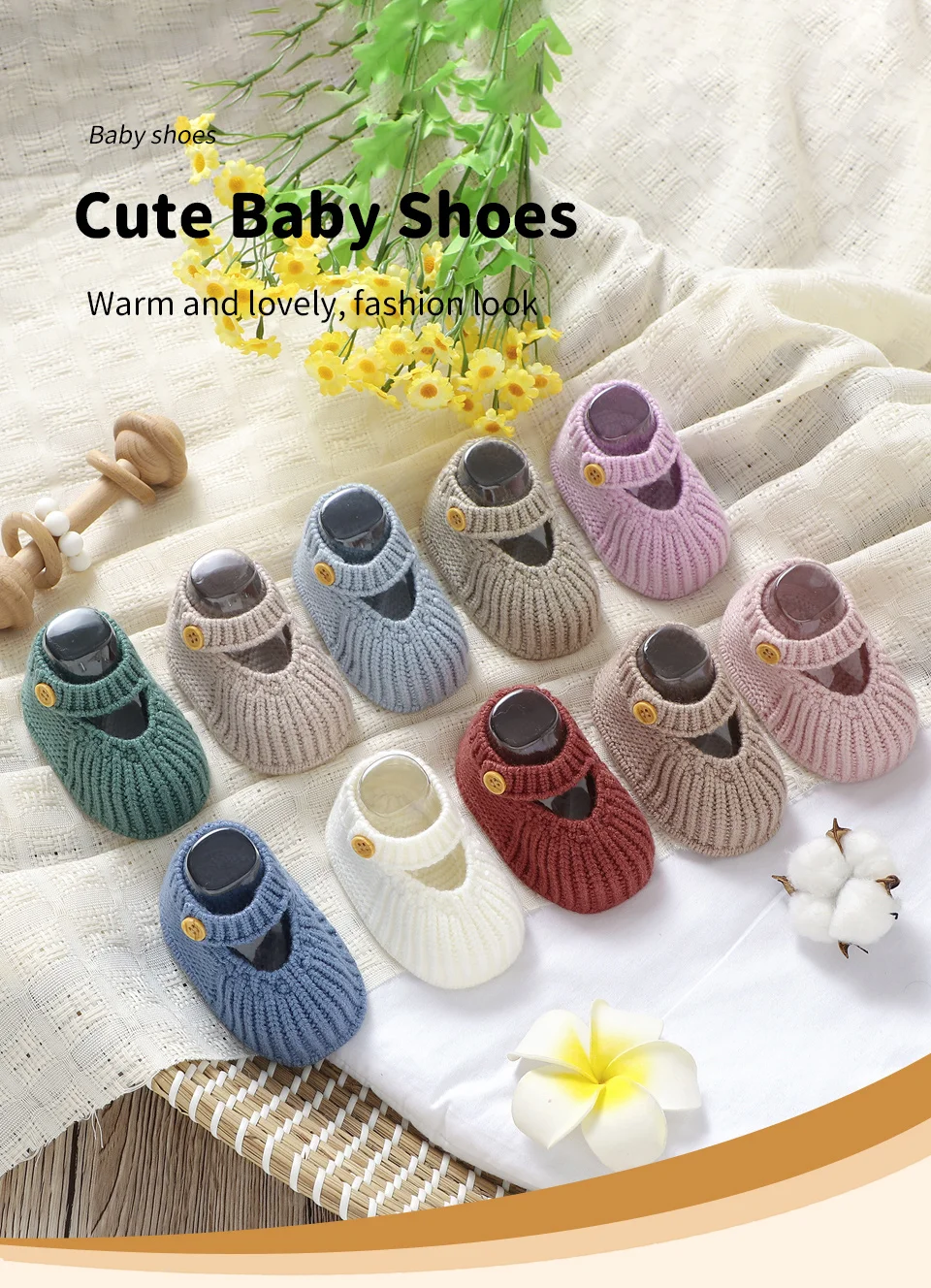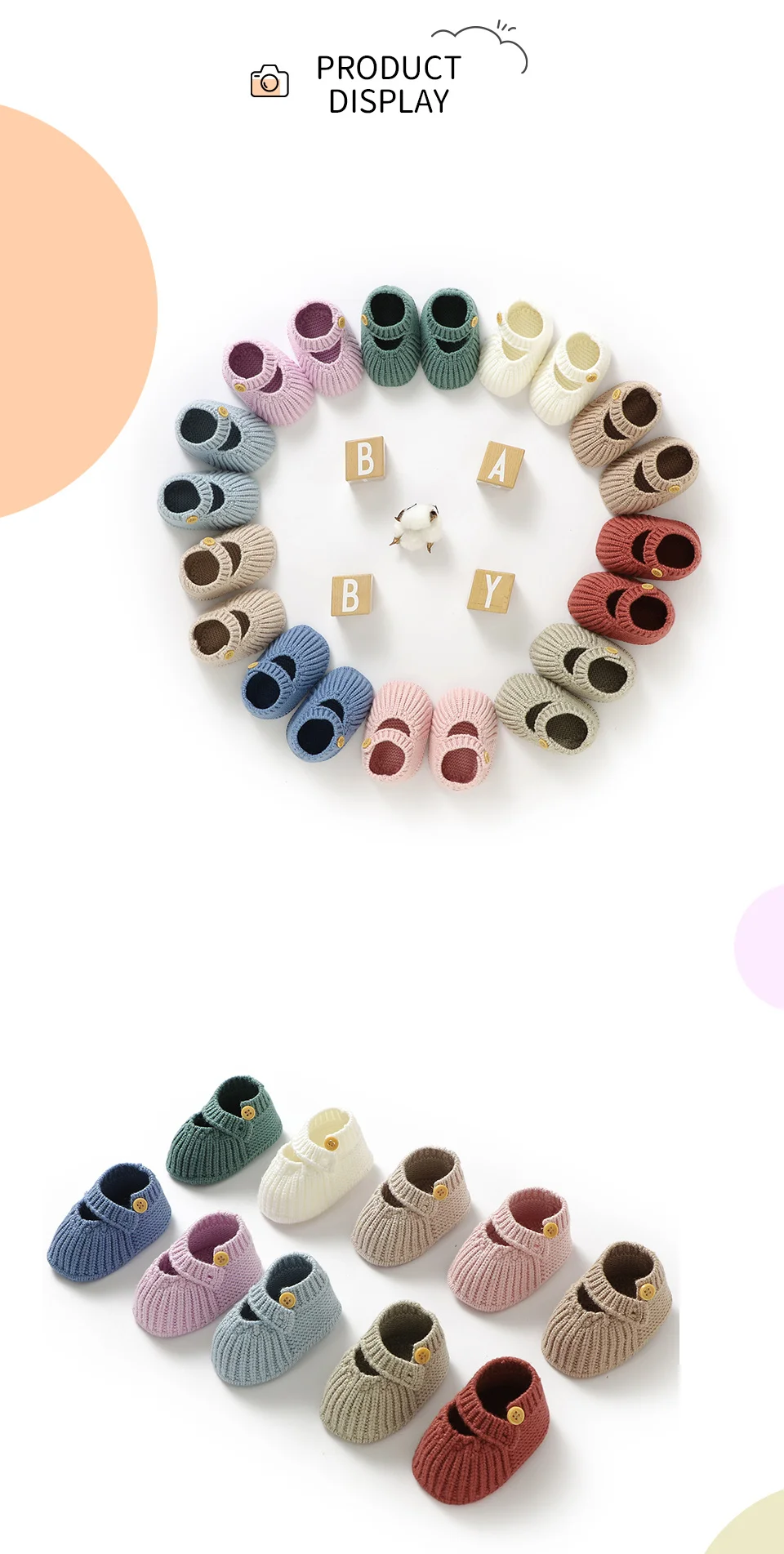 0-1Y Newborn Baby Girls First Walkers Comfortable Soft Soled Knitted Infant Shoes Handmade Toddler Anti-Slip Solid Floor Booties