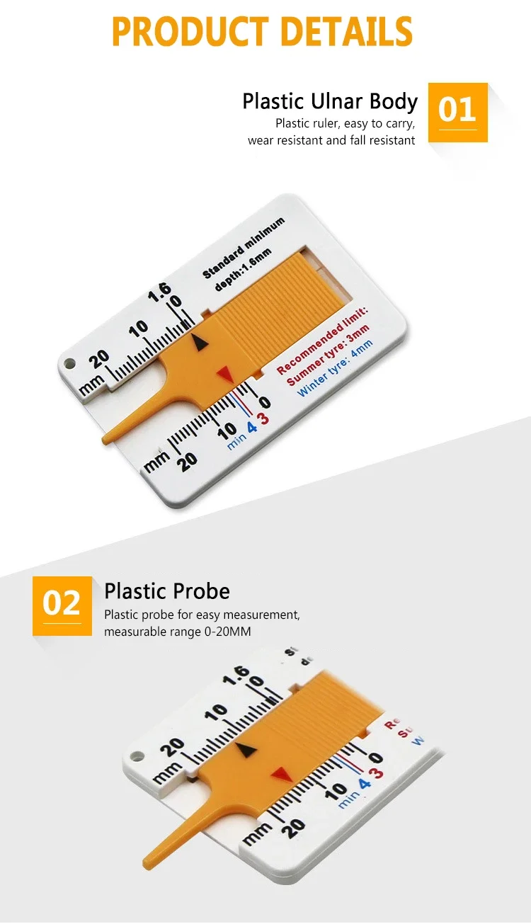 0-20MM Tyre Tread Depth Depthometer Gauge Caliper Plastic Tread Ruler Depth Ruler Motorcycle Truck Tire Wheel Measure Tool