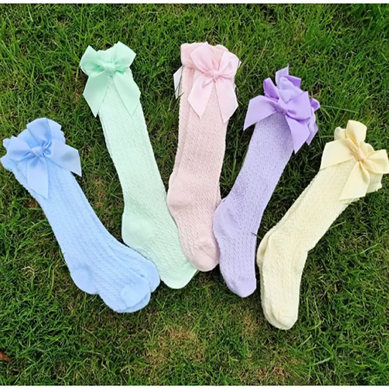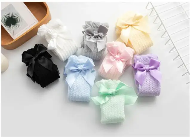 0-4T Newborn Baby Girl Bowknot Middle Tube Socks Bow Knee High Long Cotton Lace Baby Socks Comfortable Children Princess socks