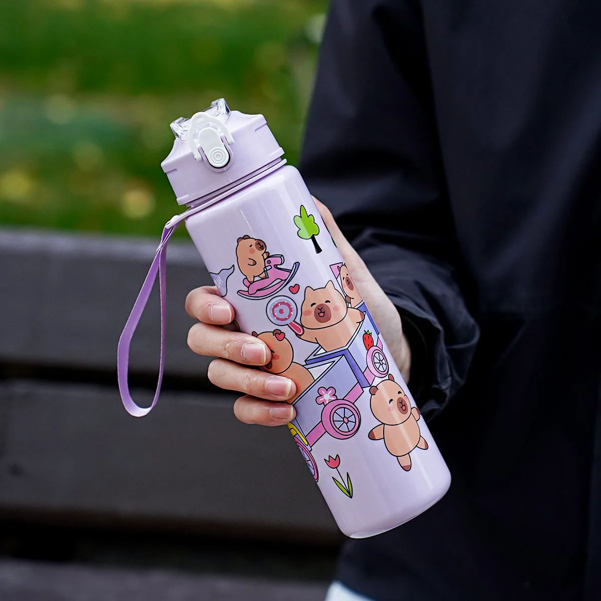 1-10PCS Capibara Straw Mug Cute Children’s High-Value Student Portable Cartoon Mug with Carrying String Water Bottles