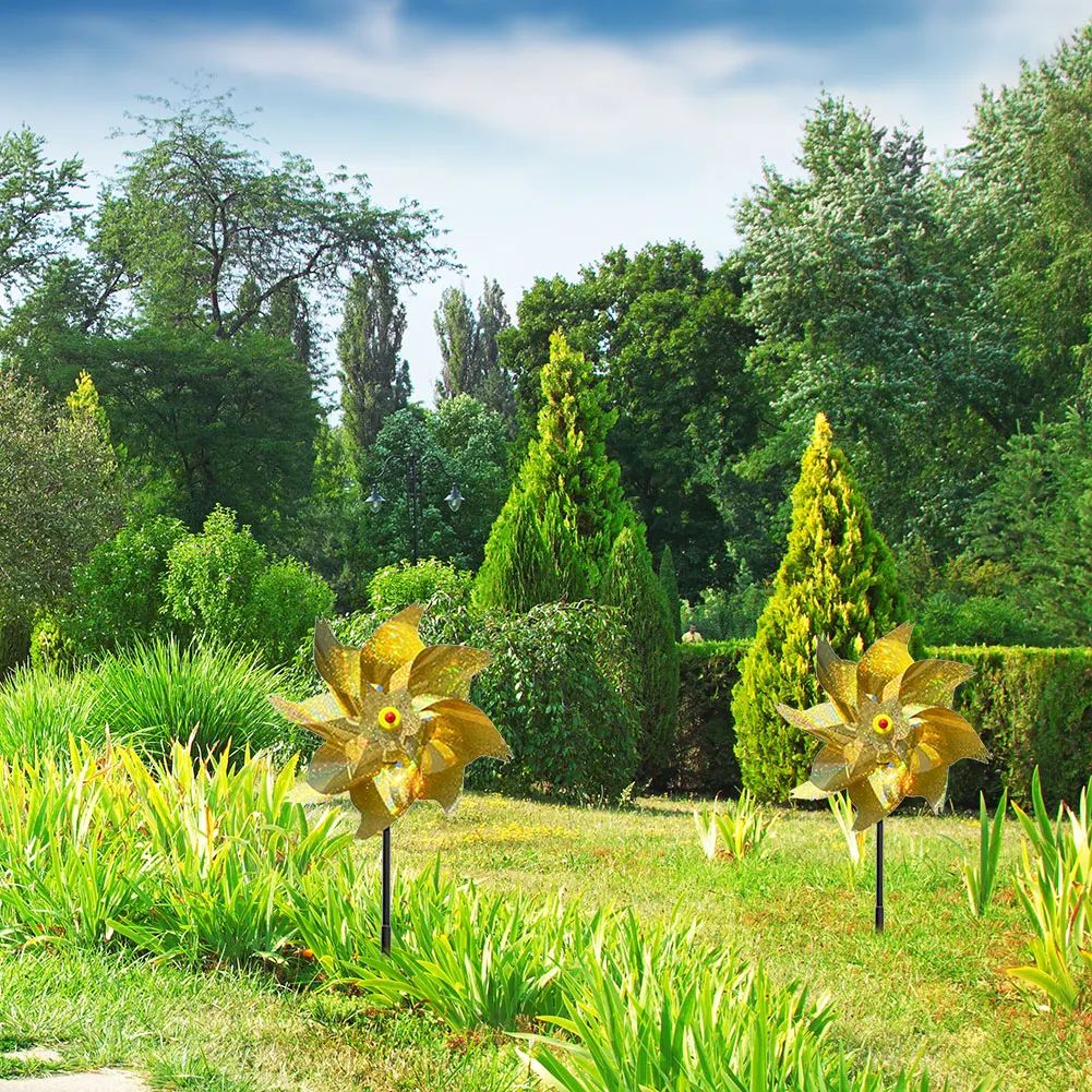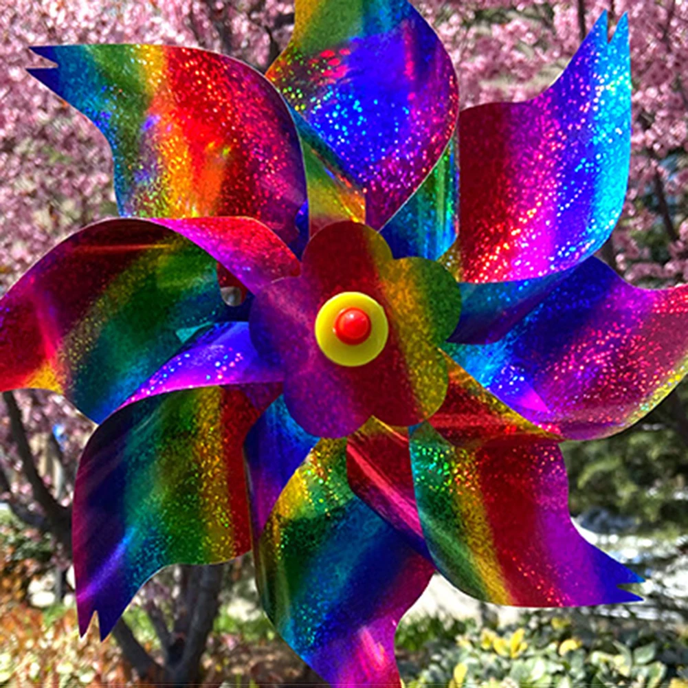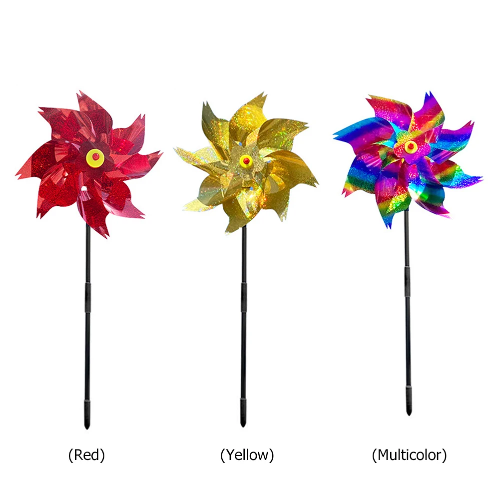 1-10PCS Sparkly Pinwheel with Stakes Outdoor Bird Scare Devices Colorful Bird Deterrent Windmill Yard Garden Orchard Protection