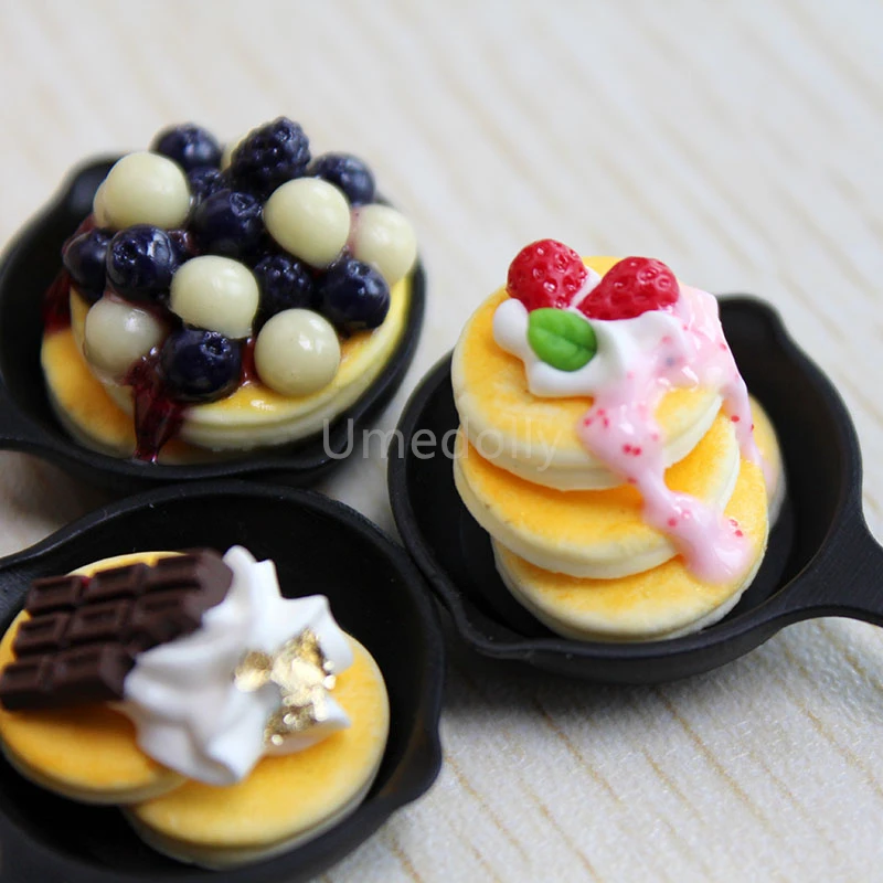1/12 Handmade Clay Mini Chocolate Blueberry Pancake Miniature Dollhouse Food for BJD OB11 Doll House Kitchen Accessory Toy