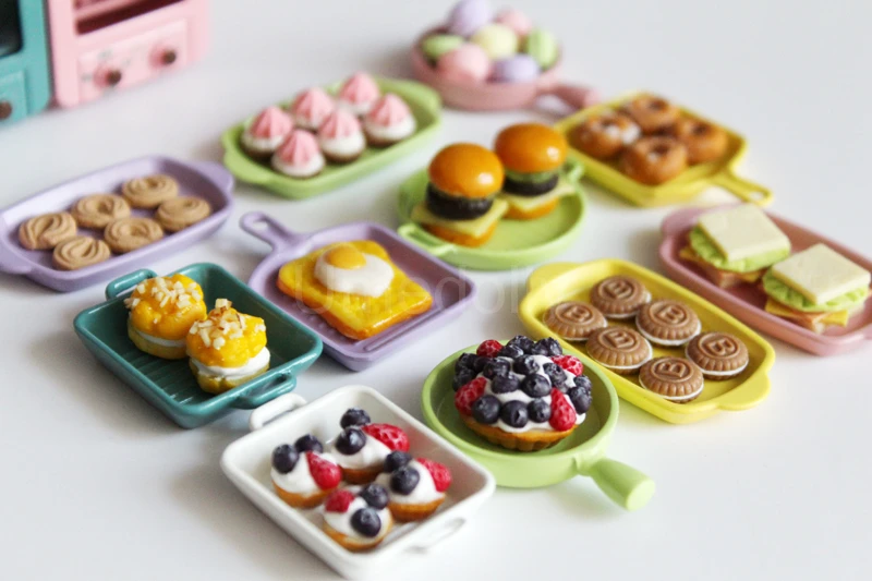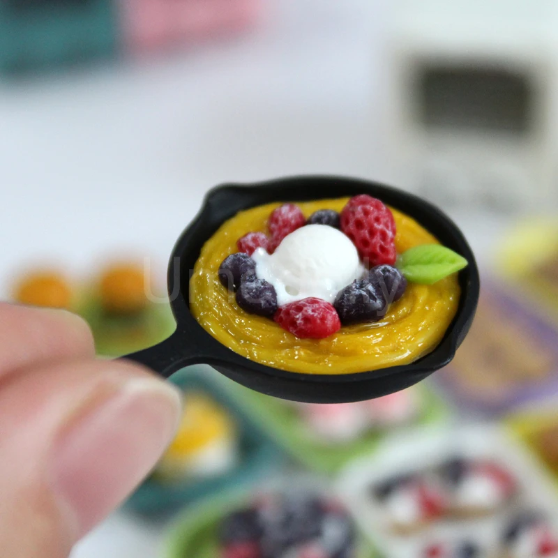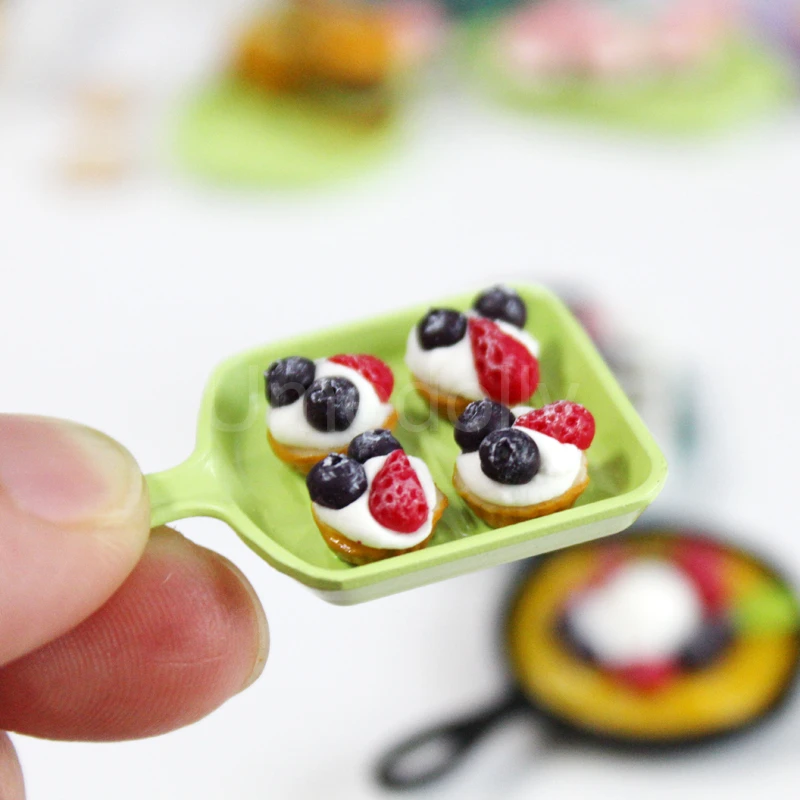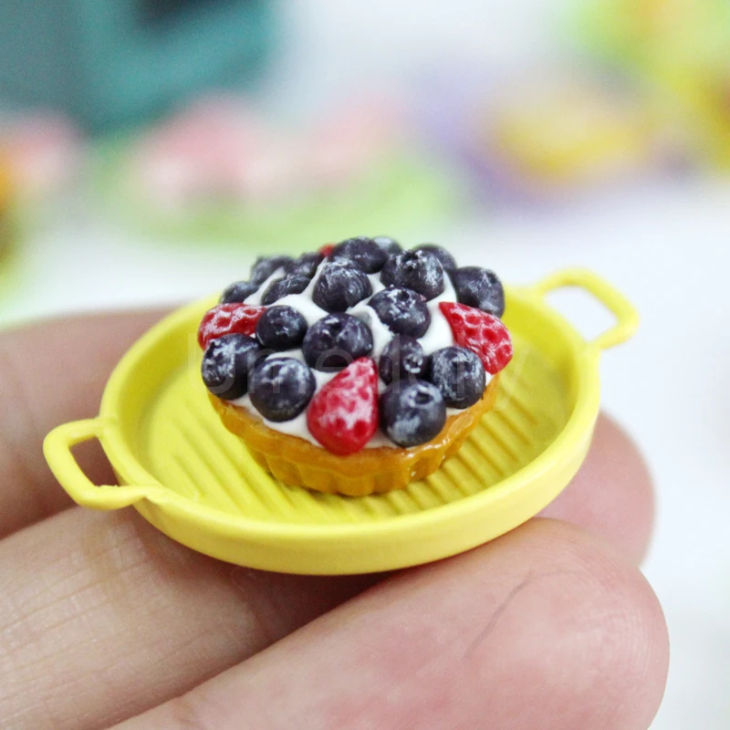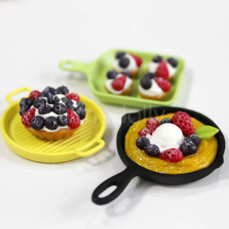 1/12 or 1/6 Cute Clay Miniature Dollhouse Strawberry Pancake Mini Blueberry Pie BJD Doll Food Play Kitchen Toy Accessories