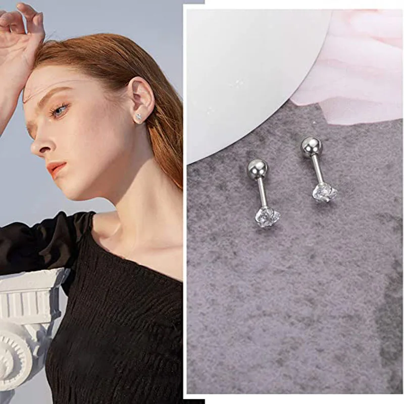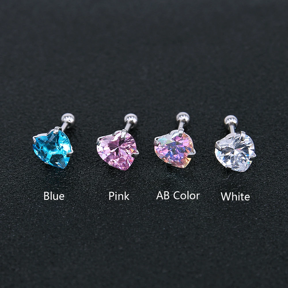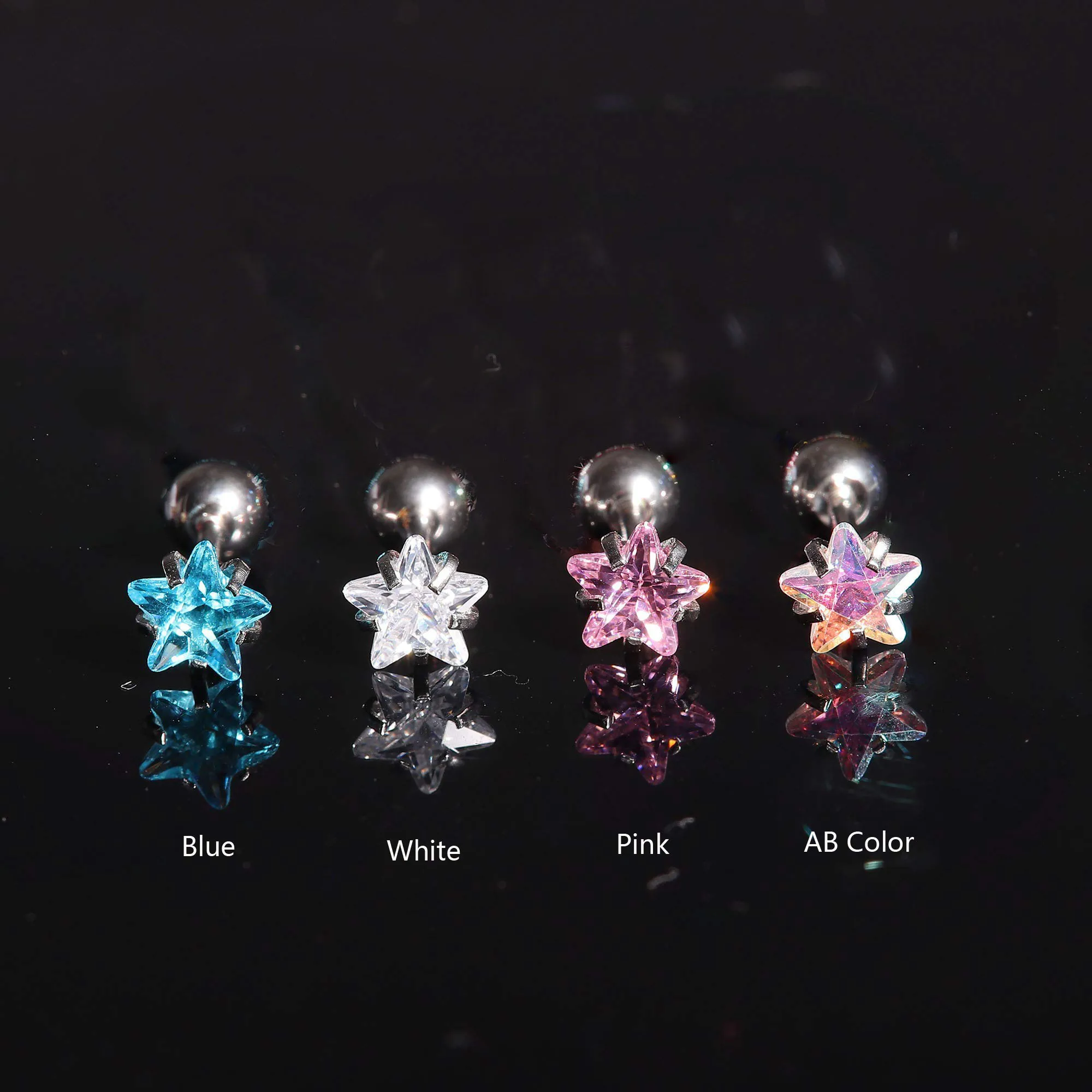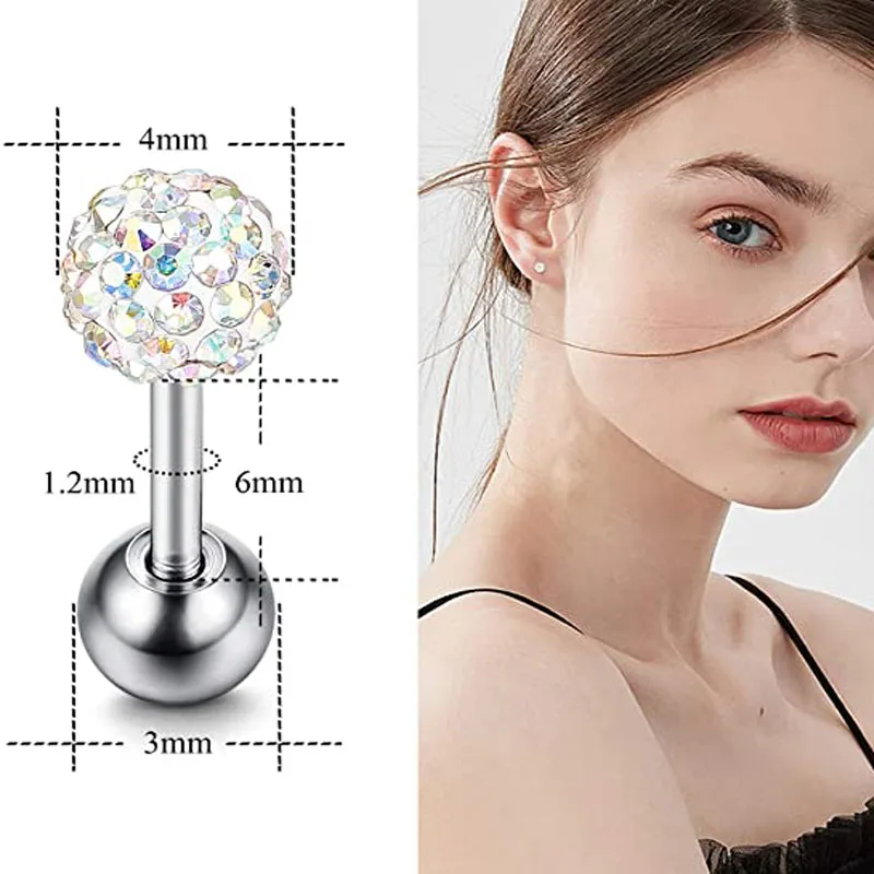 1-12 Pairs Shiny Zirconia Cartilage Stud Earring Tragus Helix Piercing Barbell Star Heart Ball Cartilage Earrings Set for Women