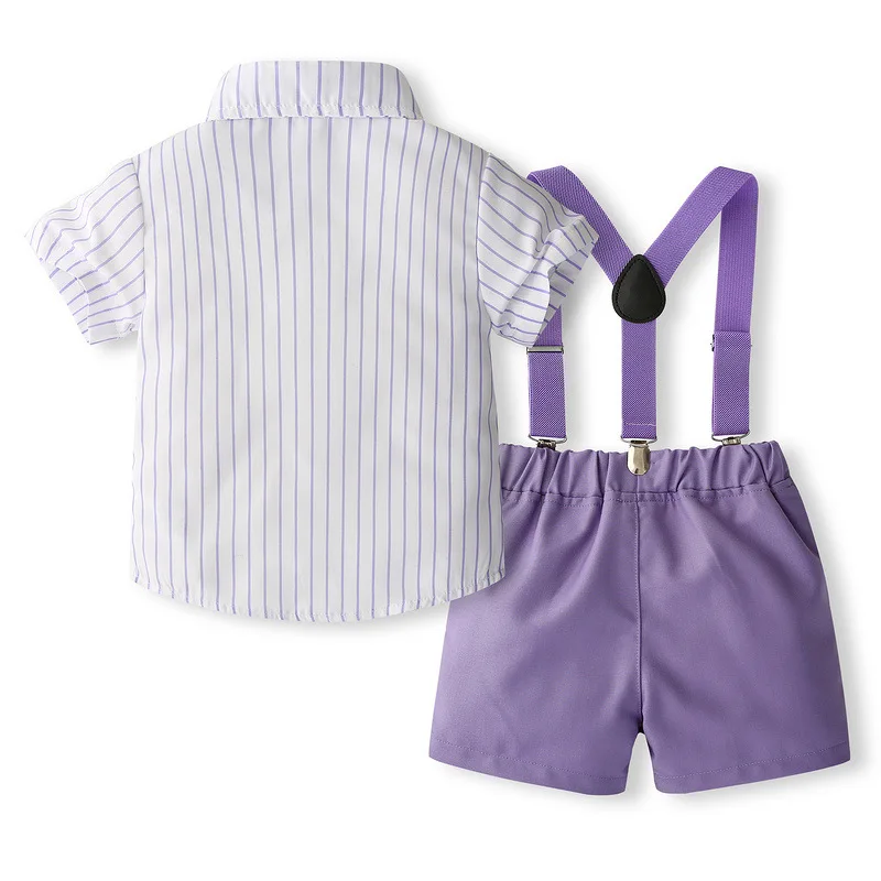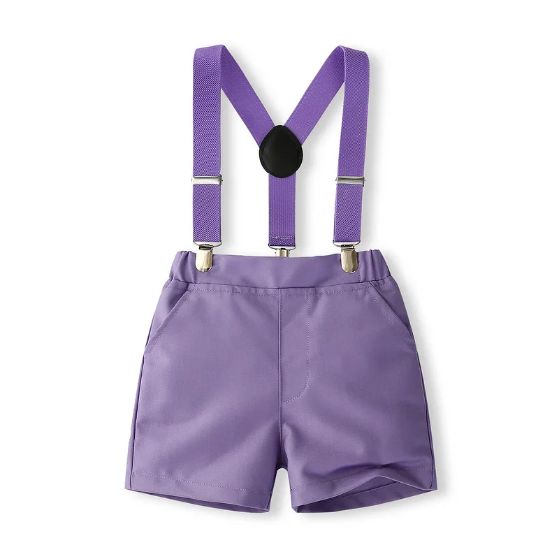1 2 3 4 5 6 Years Boy Summer Costume Star Print Suspender Set Solid T-shirt Shorts Children Toddler Wedding Suis Kid Cotton Set
