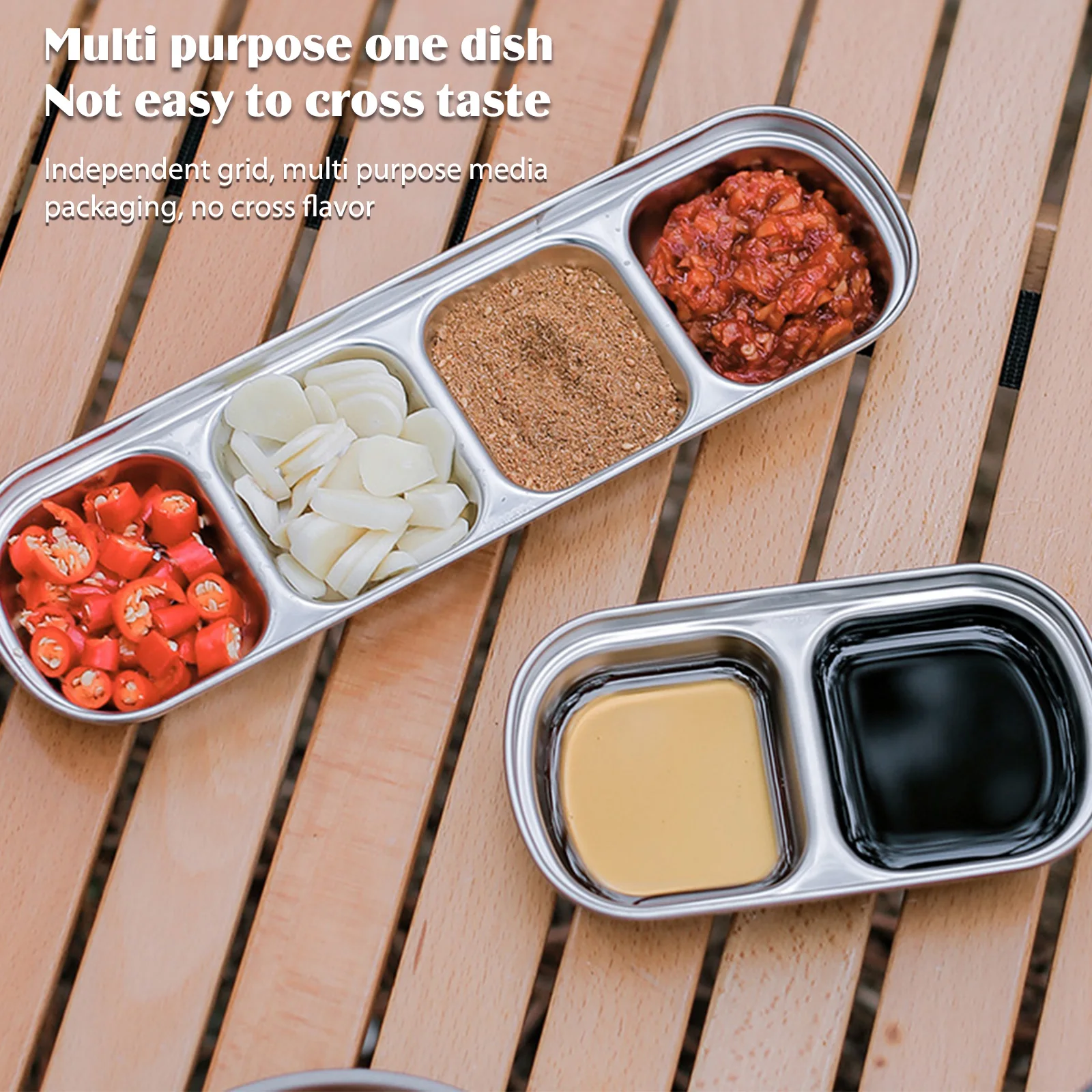 1/2/3/4-grid Barbecue Seasoning Plate 304 Stainless Steel Compartment Divided Sauce Plate Corrosion Resistant for Camping Picnic