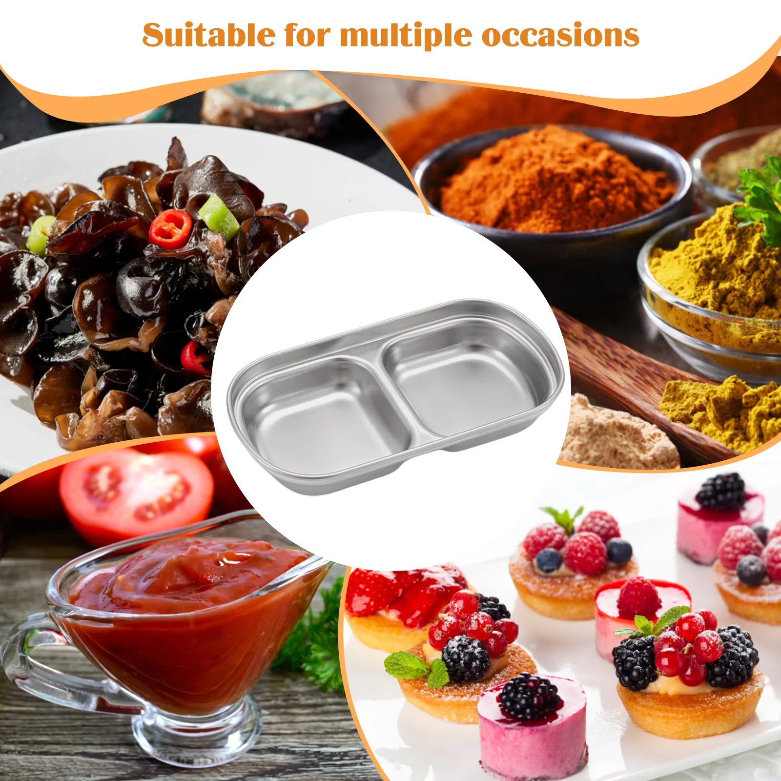1. Material: The seasoning plate is made of 304 stainless steel, which is corrosion-resistant and not easy to rust, smooth and easy to clean, and durable.