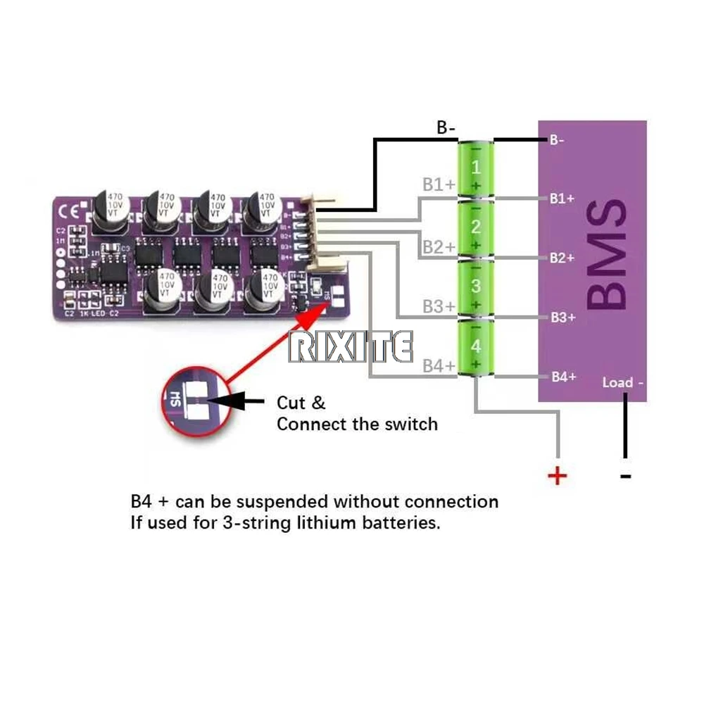 The product is used for voltage equalization between lithium battery packs and operates independently with the protection board without affecting each other. The balancing current is as high as 1200ma and the accuracy is higher than 0.03V. It is suitable for battery pack PACK maintenance and DIY battery pack use.