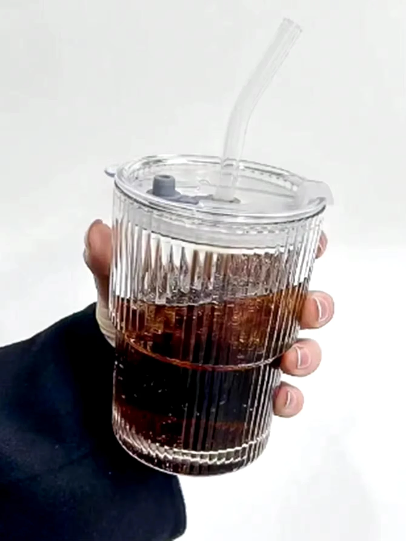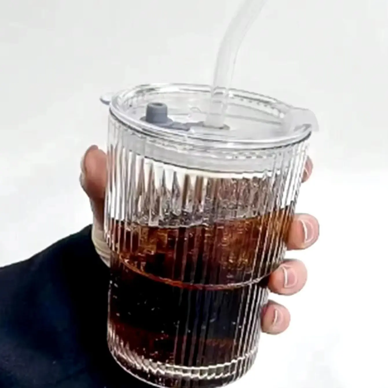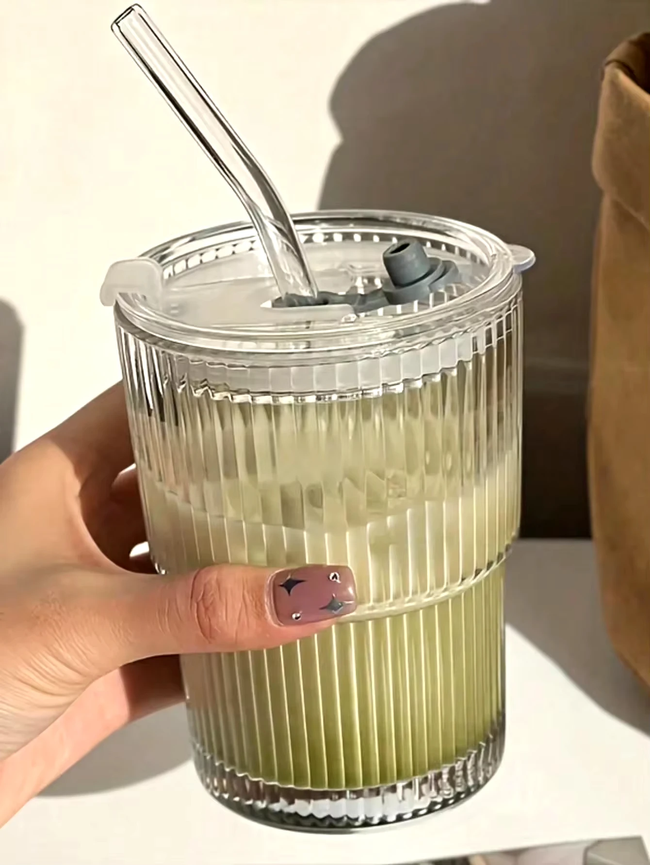 1/2PCS 450ml Stripe Glass Cup Transparent Glasses With Lid and Straw Ice Coffee Mug Tea Cup Juice Glass Milk Water Cup Drinkware