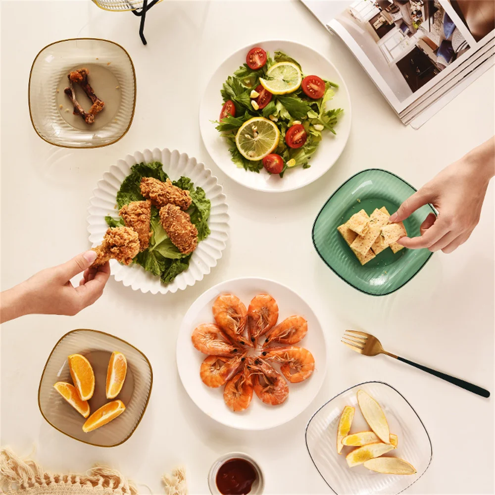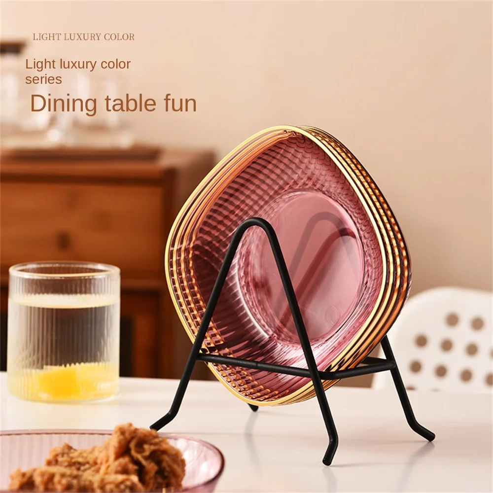 5. The details of the golden border add texture, and the transparent rose red color is matched with the striped texture in the plate, which is full of light luxury and the dining table is no longer monotonous.
