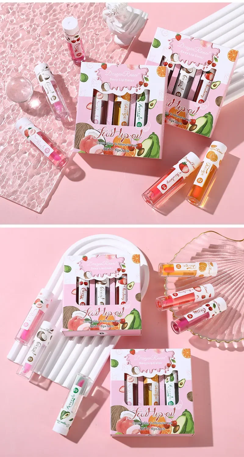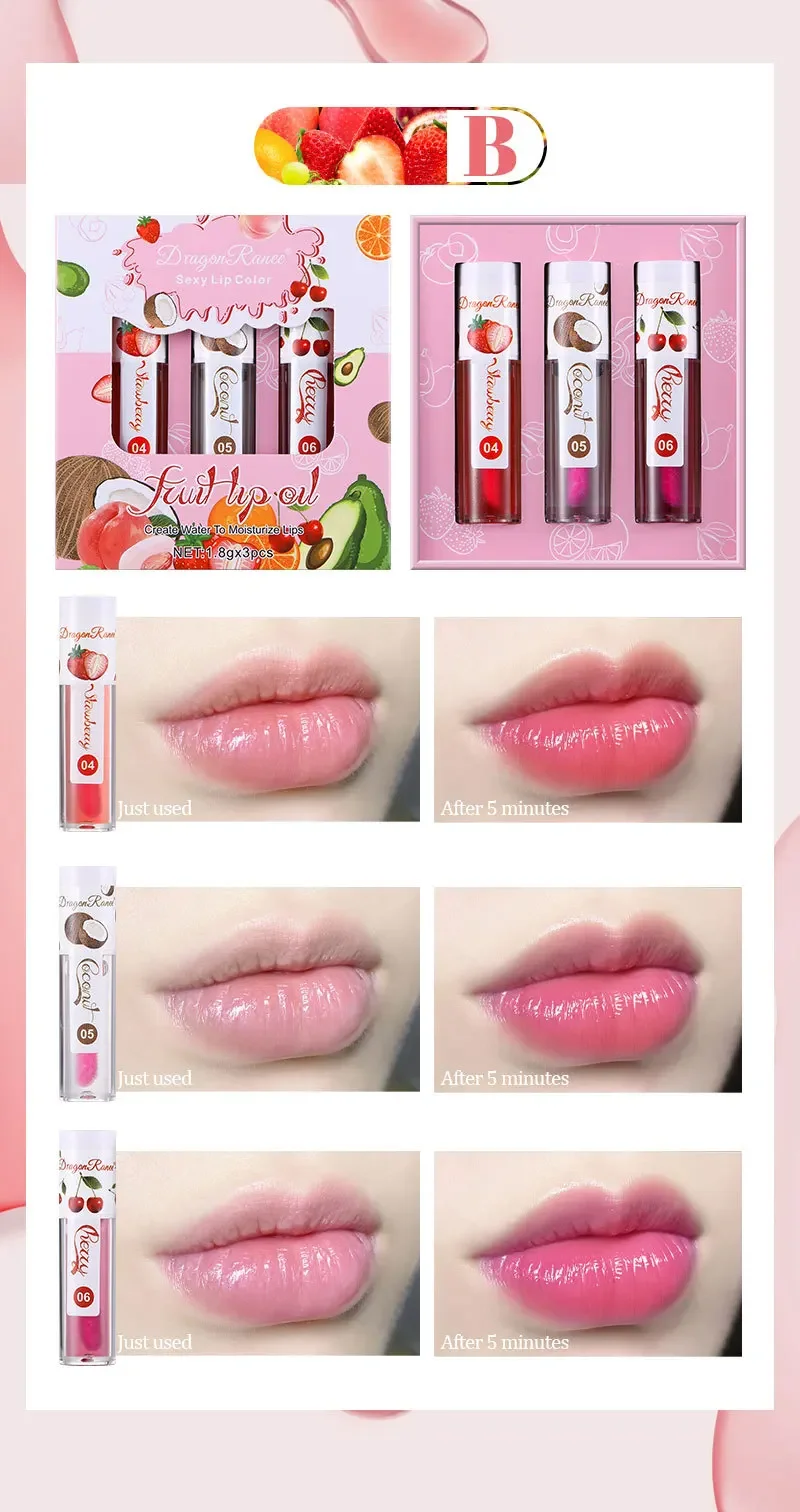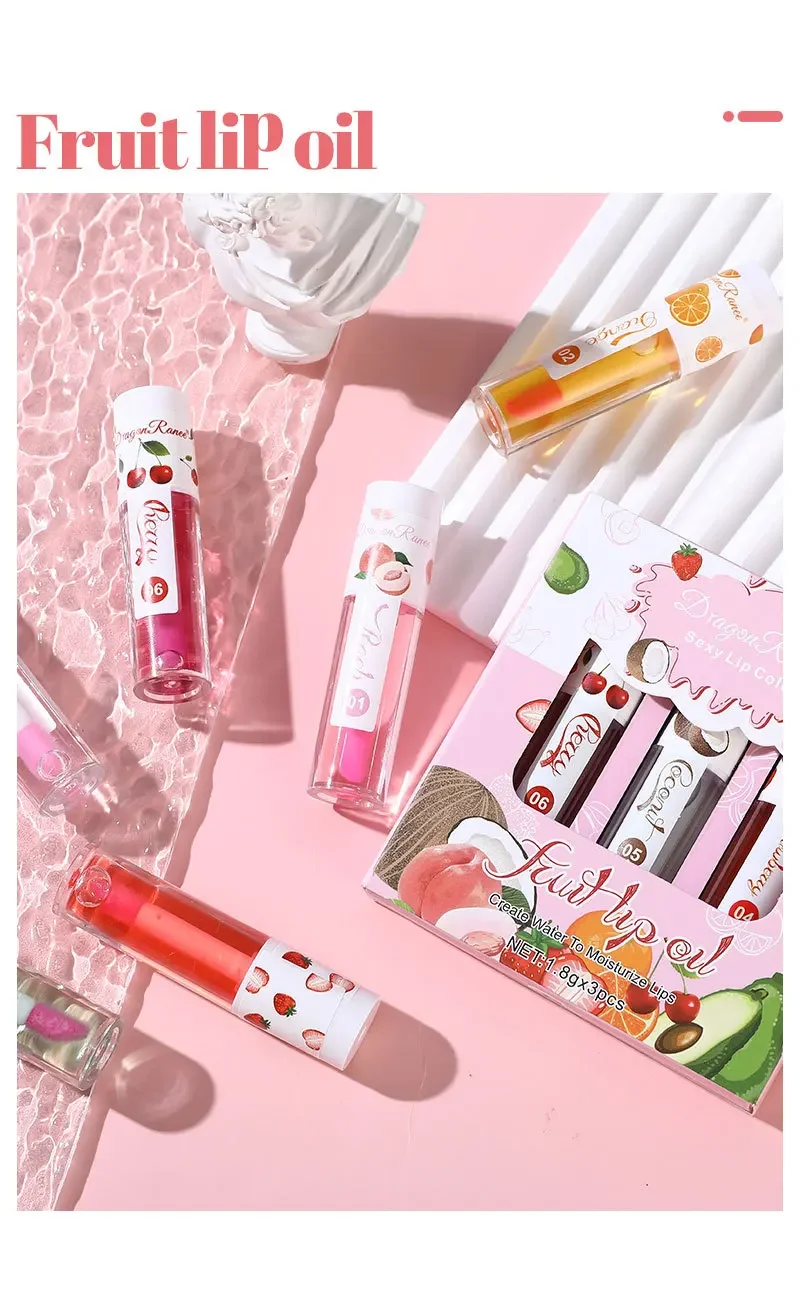 1/3Pcs Fruit Lip Oil Long Lasting Hydrating Lip Gloss Jelly Mirror Liquid Lip Glaze Long Lasting Shiny Lip Tint Makeup Lip Care