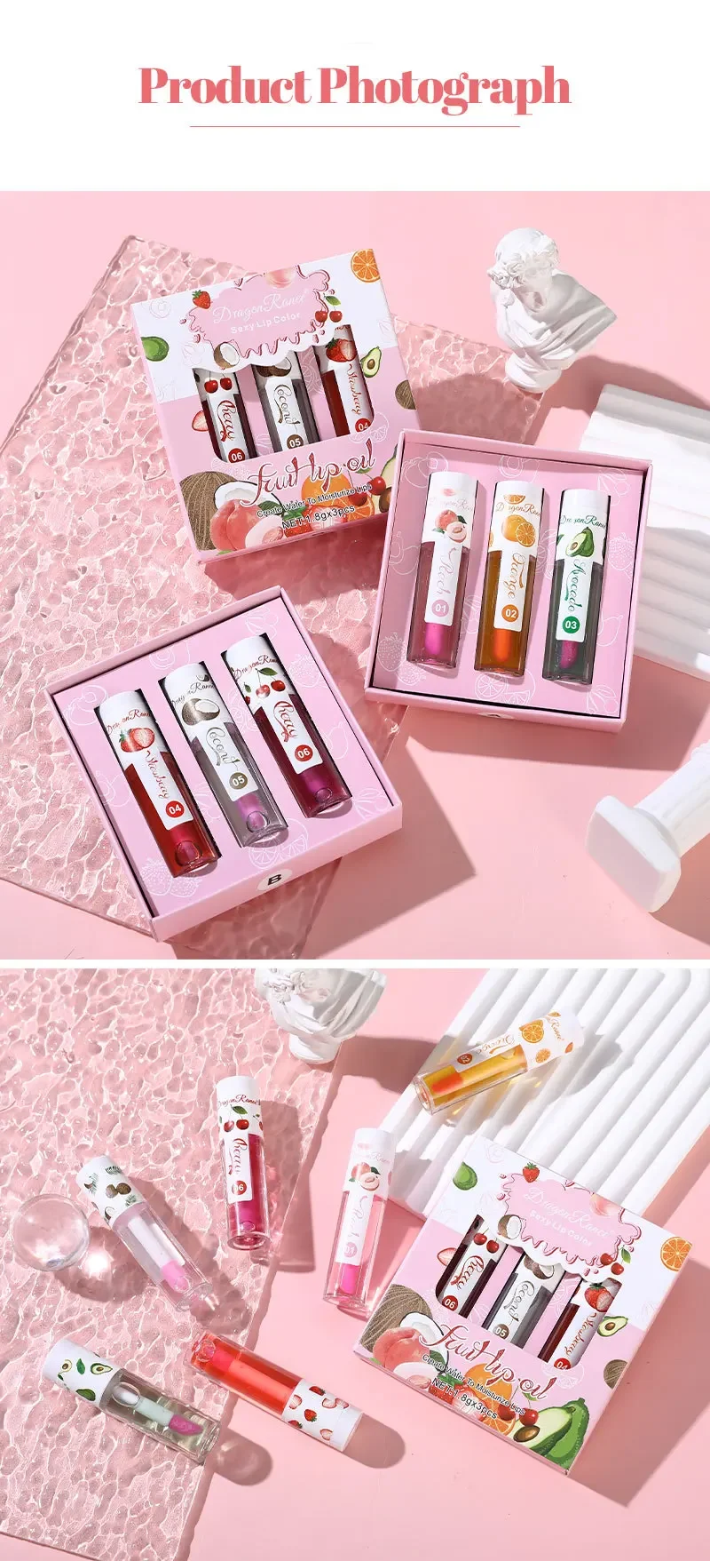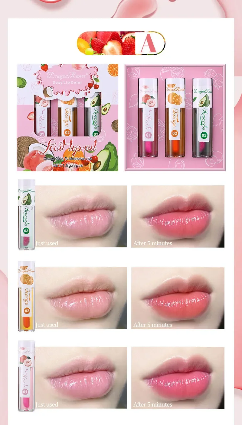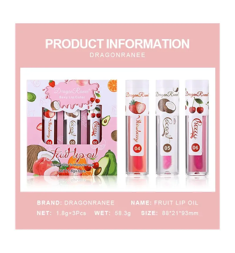 1/3Pcs Fruit Lip Oil Long Lasting Hydrating Lip Gloss Jelly Mirror Liquid Lip Glaze Long Lasting Shiny Lip Tint Makeup Lip Care