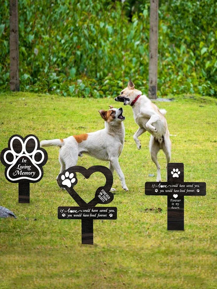 1/3PCS Pet Memorial Wooden Grave Cross Funerary Mark Deceased Dog Paw Print Cemetery Plate Footprint Plaque Yard Garden Decor