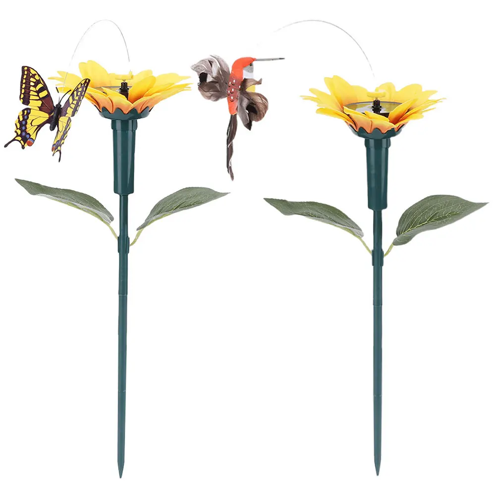 1-3pcs Solar Powered Flying Butterfly Bird Sunflower Garden Decor Rotating Butterflies Hummingbird Ornament Garden Stake Decor