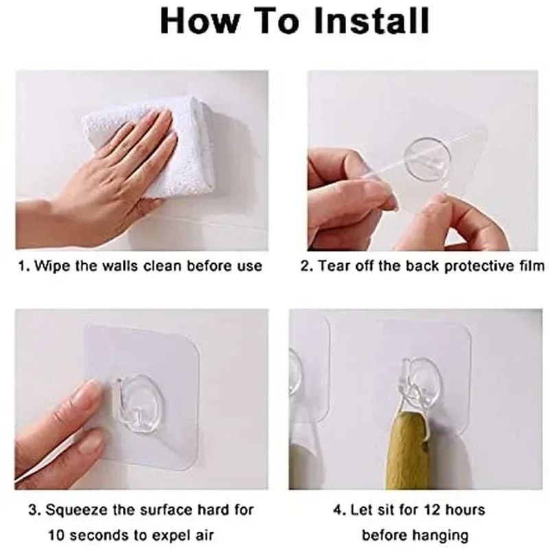 1-40pcs Transparent Self Adhesive Hooks Heavy Duty Rack Wall-mounted Hooks Key Storage Hanger Kitchen Bathroom Organizer Rack