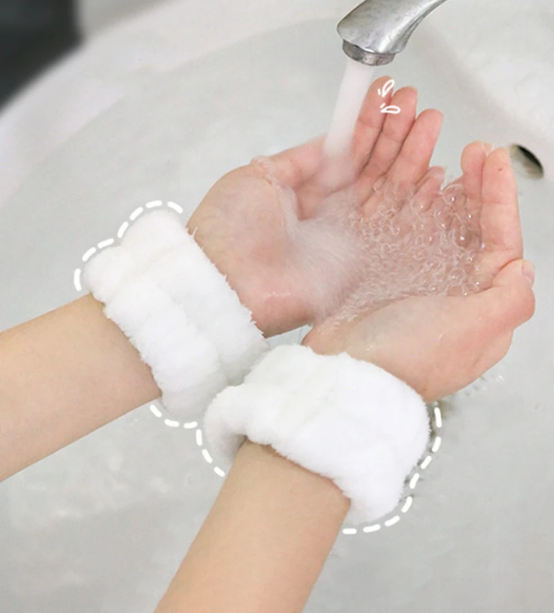 2. No water will drop when washing your face. No matter how your arm moves, the water will only be absorbed by the wrist strap and will not drop at all
