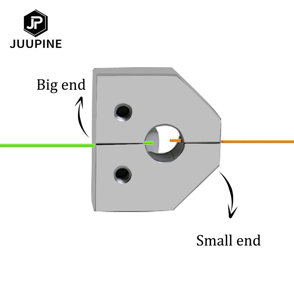 2.One end pass-through from the direction of the big end of the filament welder to the tick mark.