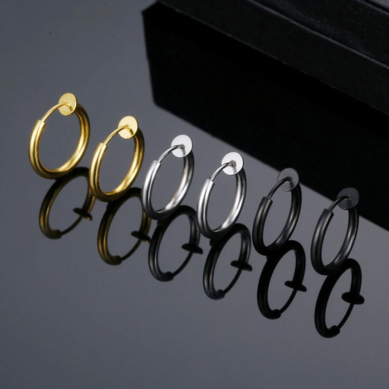 1 Pairs Fake Ear Clip Hoop Earrings for Men and Women Stainless Steel Painless Non Piercing Fake Earrings Jewelry Gifts