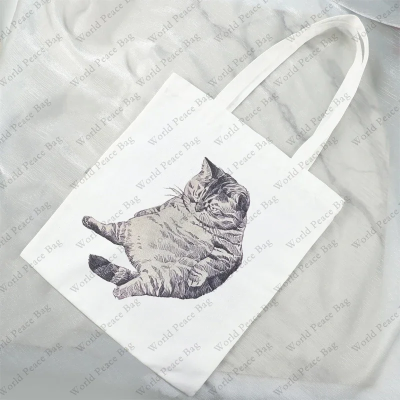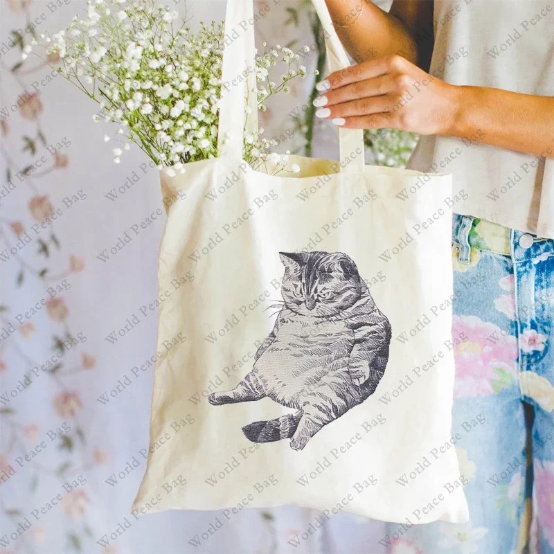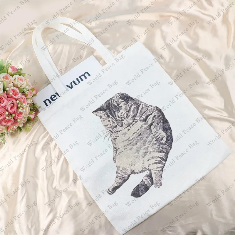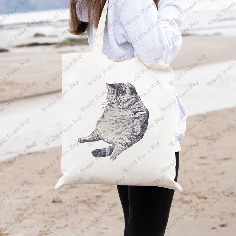1 Pc Cute Cat Kitty Pattern Tote Bag Lightweight Canvas Shoulder Bag for Travel Daily Commute Women Reusable Shopping Bag Trendy