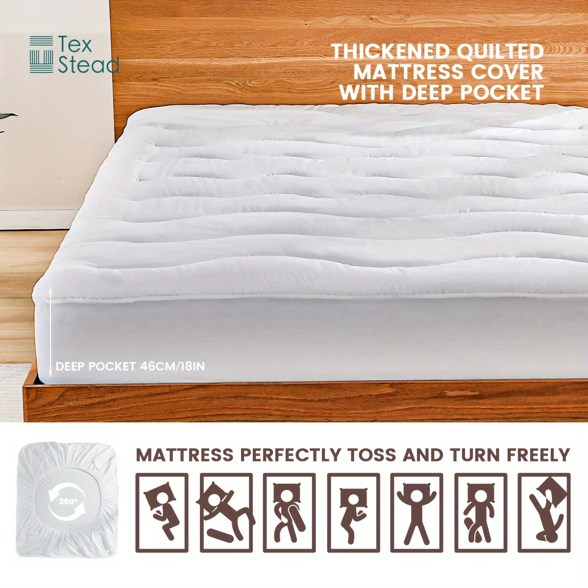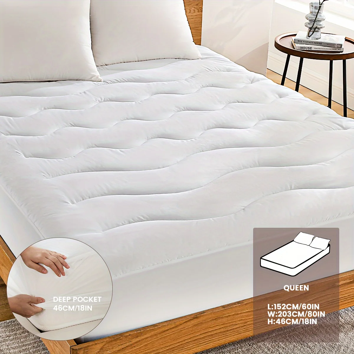 1 Pc Mattress Cover Quilted Fitted Bed Cover Soft Breathable Machine Washable, Deep Pocket