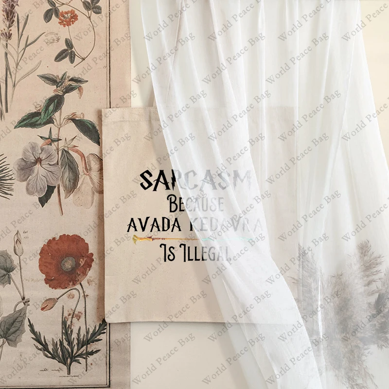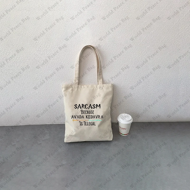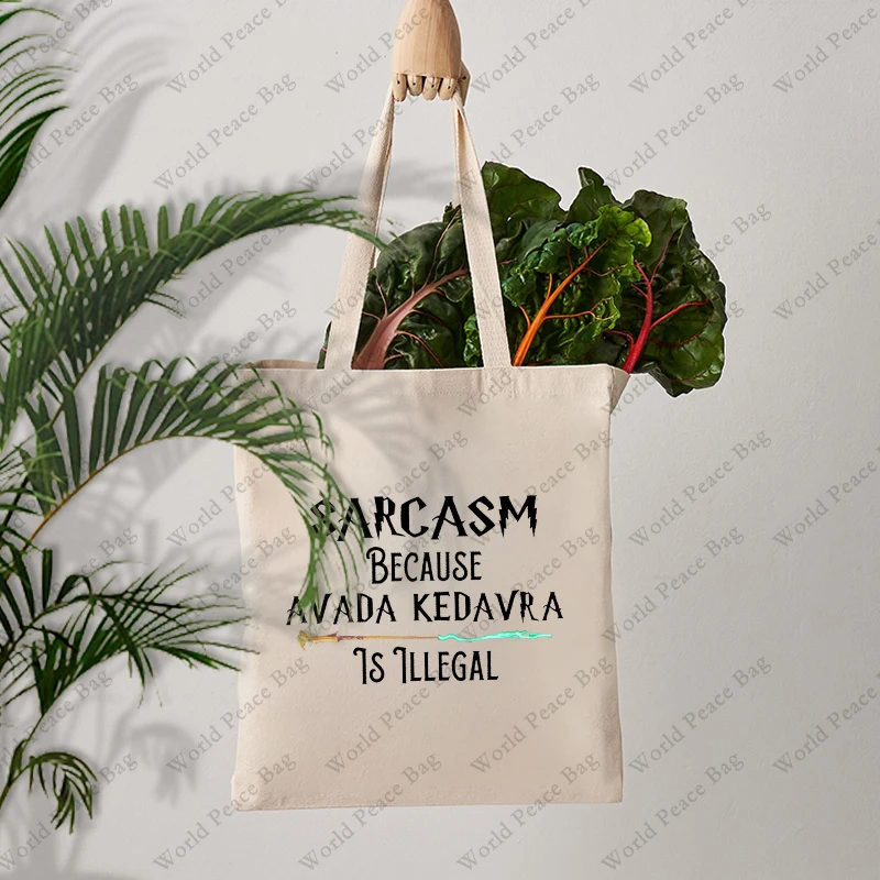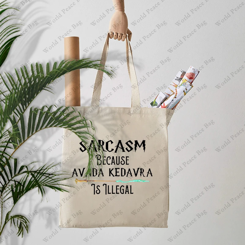 1 pc Sarcasm Because Avada Kedavra Is Illegal pattern Tote Bag Canvas Shoulder Bag For Travel Daily Commute Women’s Reusable