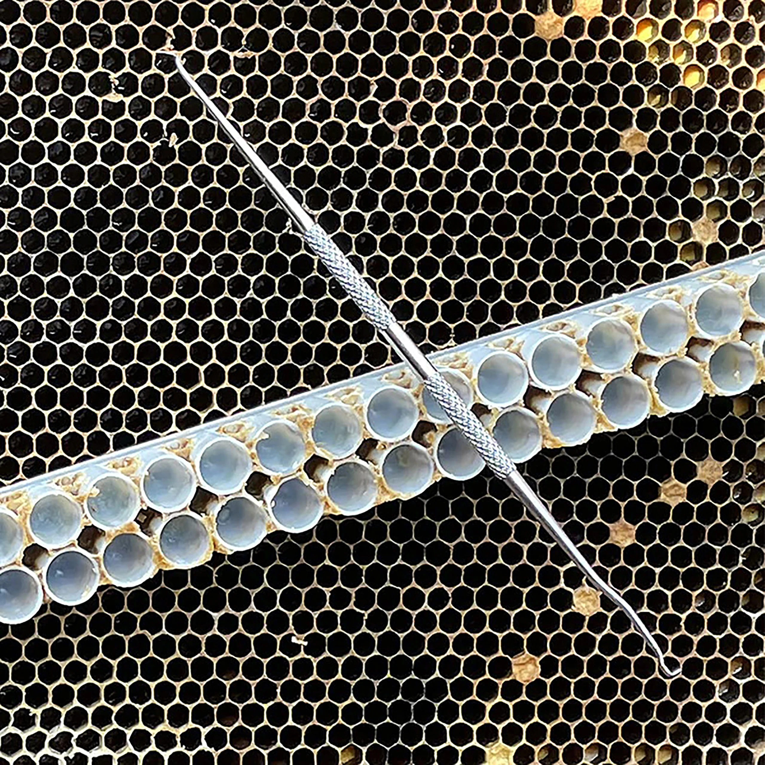 Using this grafting tool you can precisely transfer individual bees onto the queen cell cup.