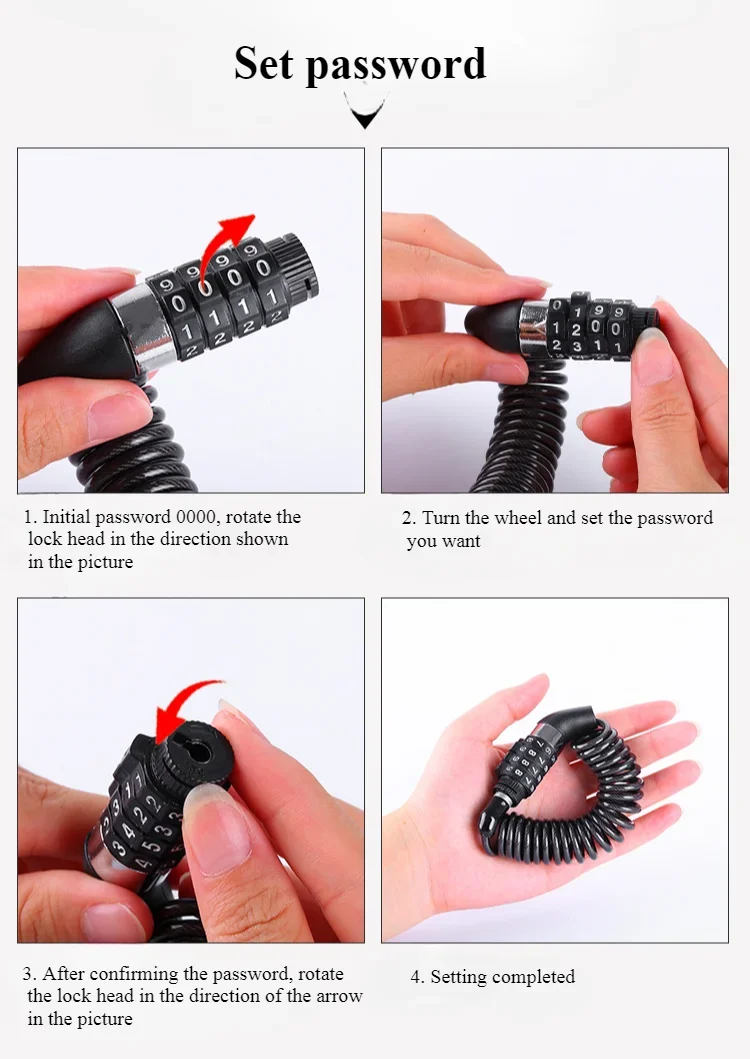 Features: Password unlocking, retractable steel cable, compact and portable for easy carrying