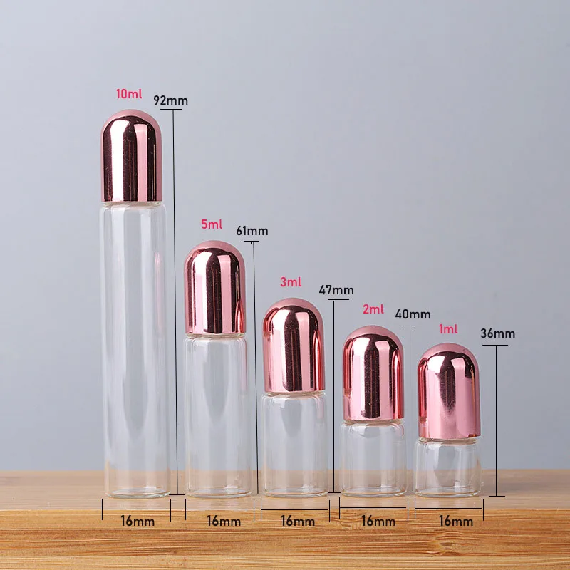 1 pcs 1ml 2ml 3ml 5ml 10ml Transparent Steel Ball Roll on Bottle Essential Oil Perfume Vials Cosmetic Glass Container for Travel