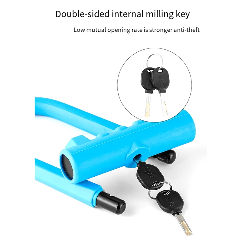 This U lock is a security device for your bicycle. It can withstand lever attacks and cutting attempts. The lock has that do not hurt your hands when you handle it.