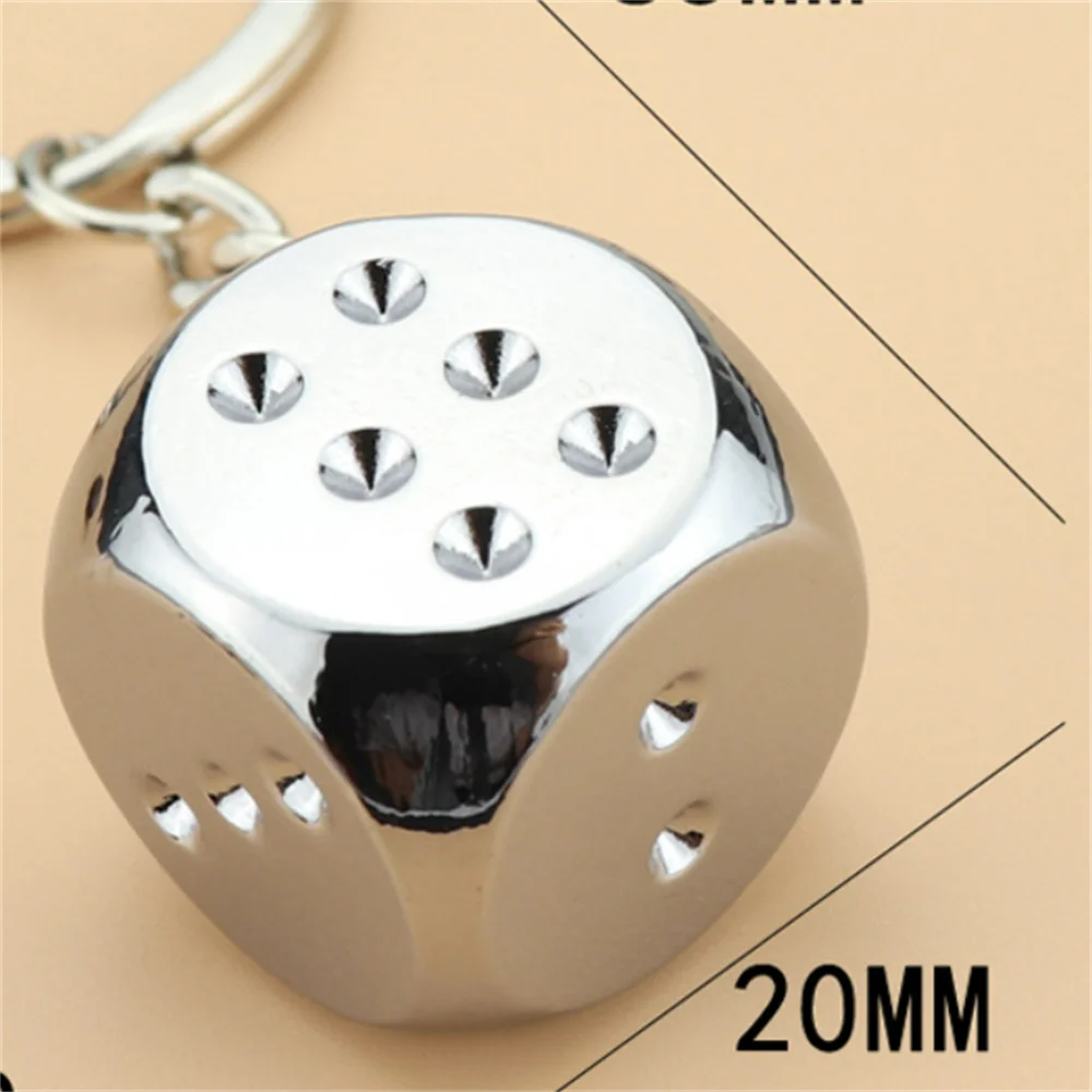 1 Piece 2cm*2cm*2cm Metal Point Dice With Key Chain Kirsite Cube Club Souvenir Accessory Key Chains