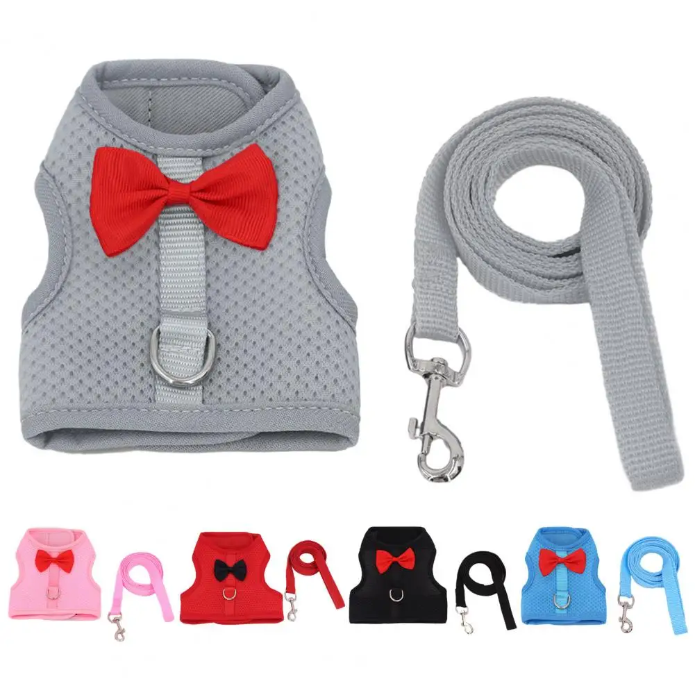 1 Set Pet Harness Leash Stylish Bow Decoration Small Pets Rabbit Traction Harness Fastener Tape Pet Harness For Outdoor Walking