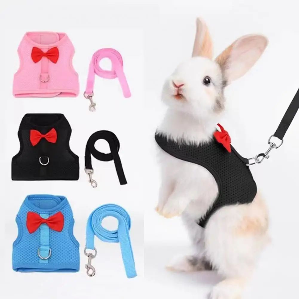 1 Set Pet Harness Leash Stylish Bow Decoration Small Pets Rabbit Traction Harness for Outdoor Walking