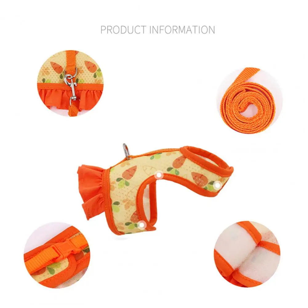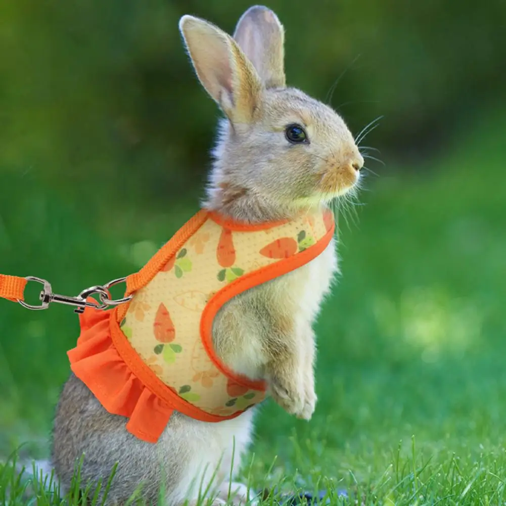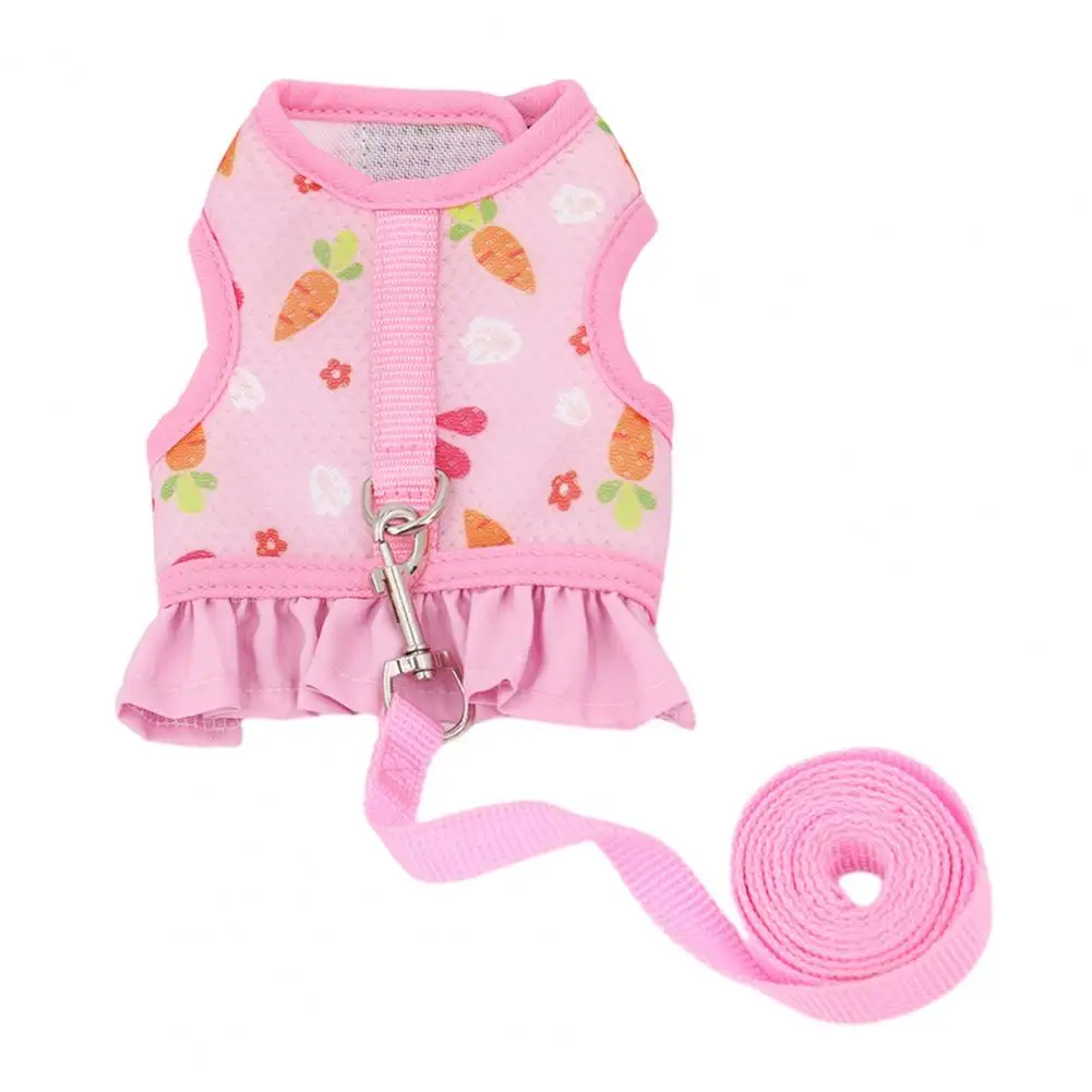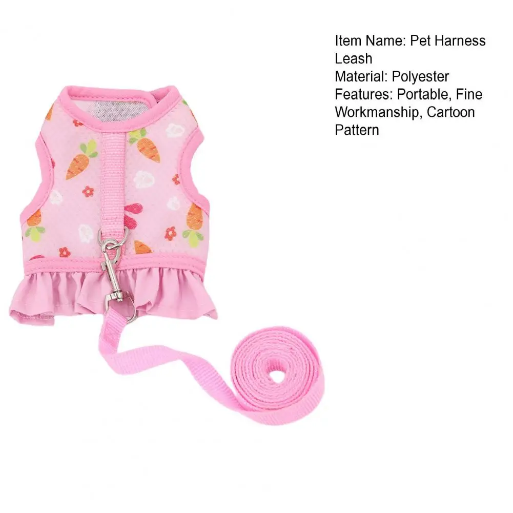 1 Set Pet Harness Leash Stylish Cute Cartoon Pattern Guinea Pig Rabbit Vest Harness Set for Outdoor Walking