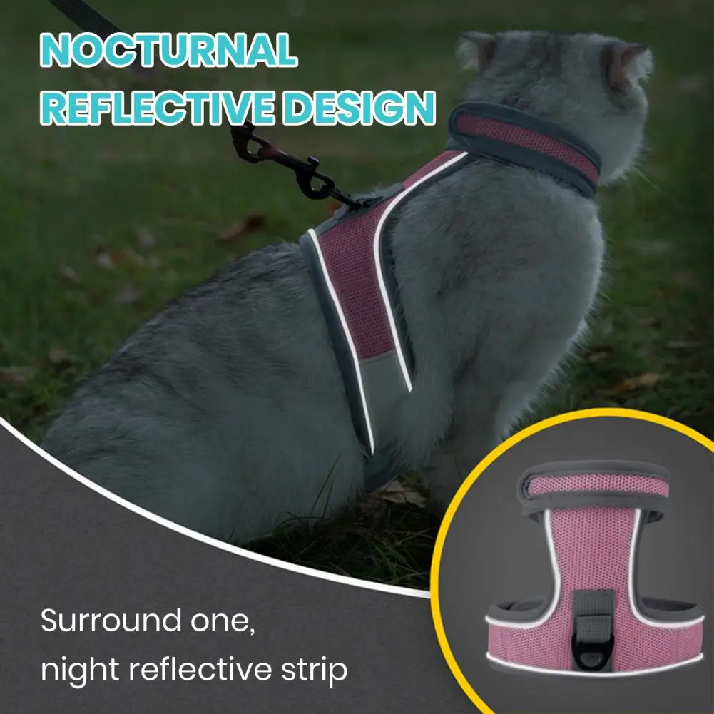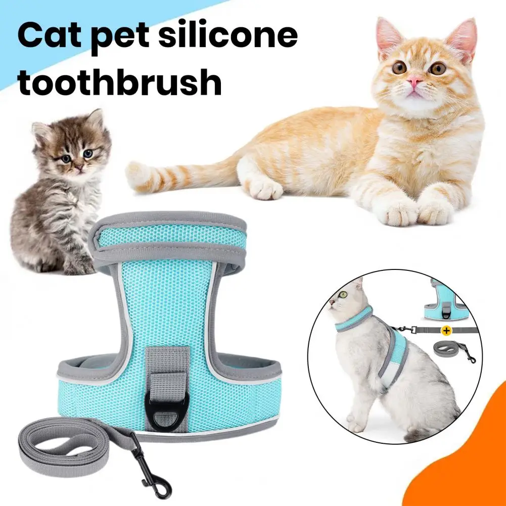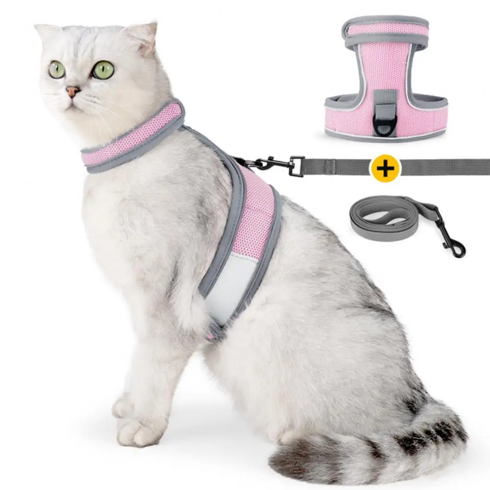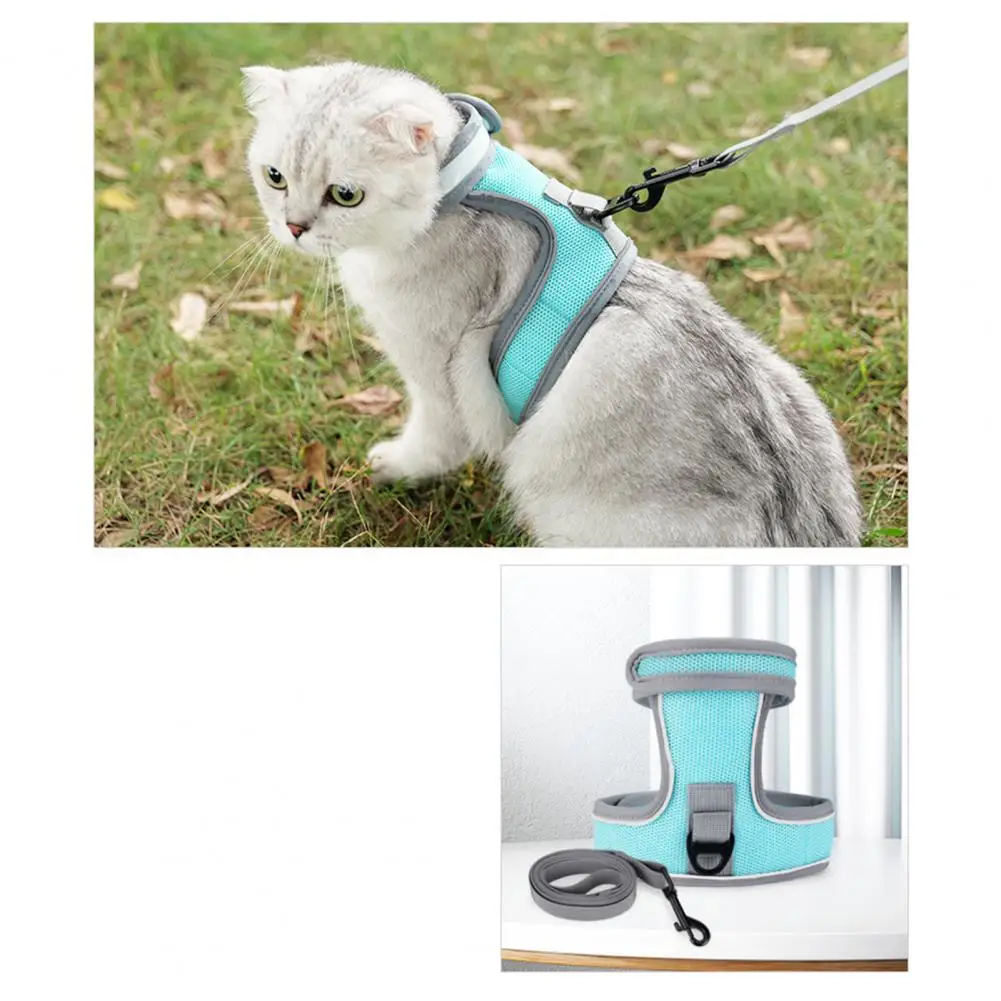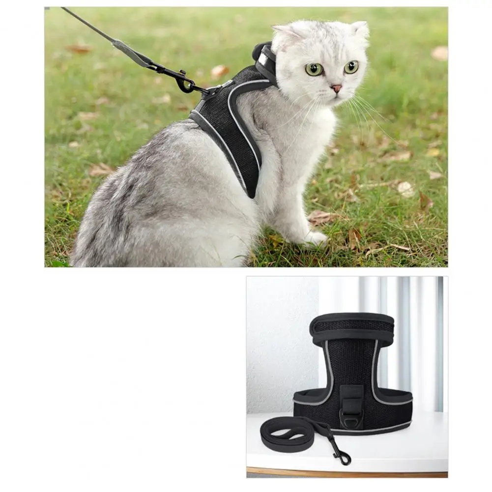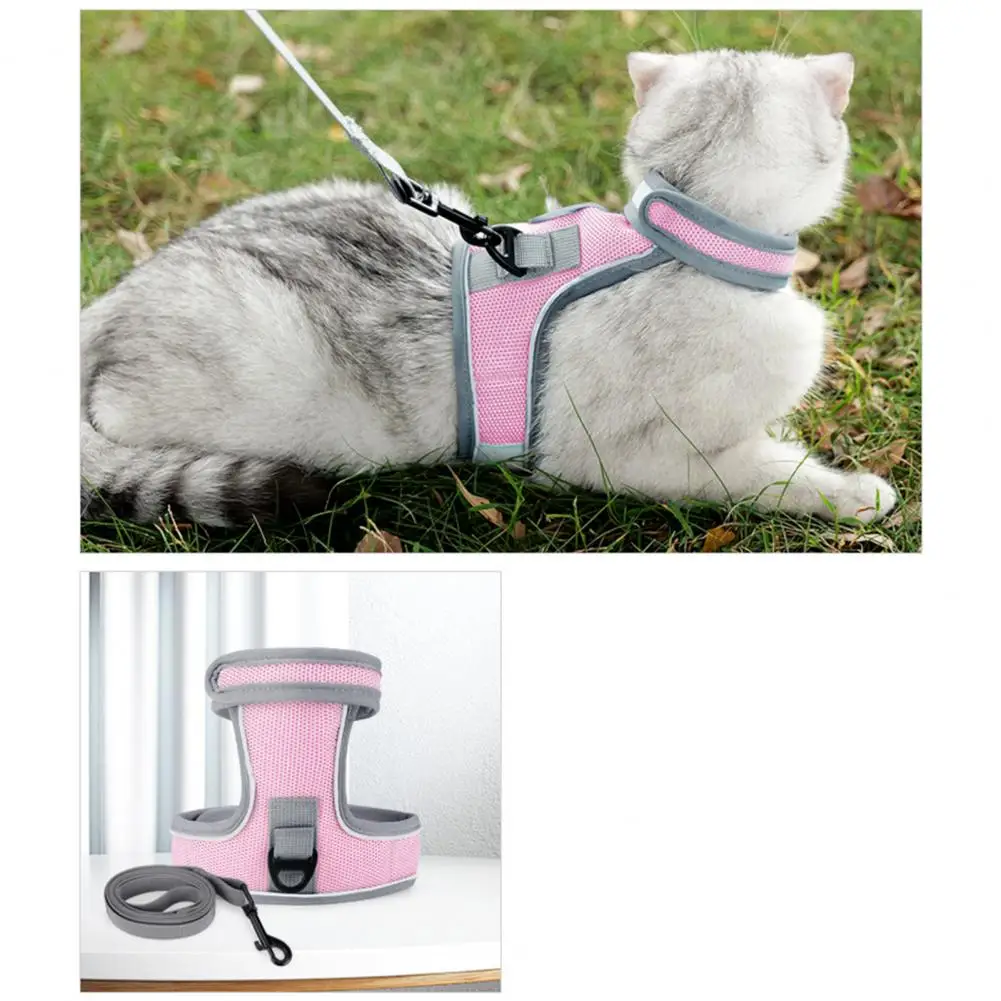 1 Set Pet Leash Adjustable Fastener Tape Reflective Cat Harness And Traction Leash Set for Outdoor Walks