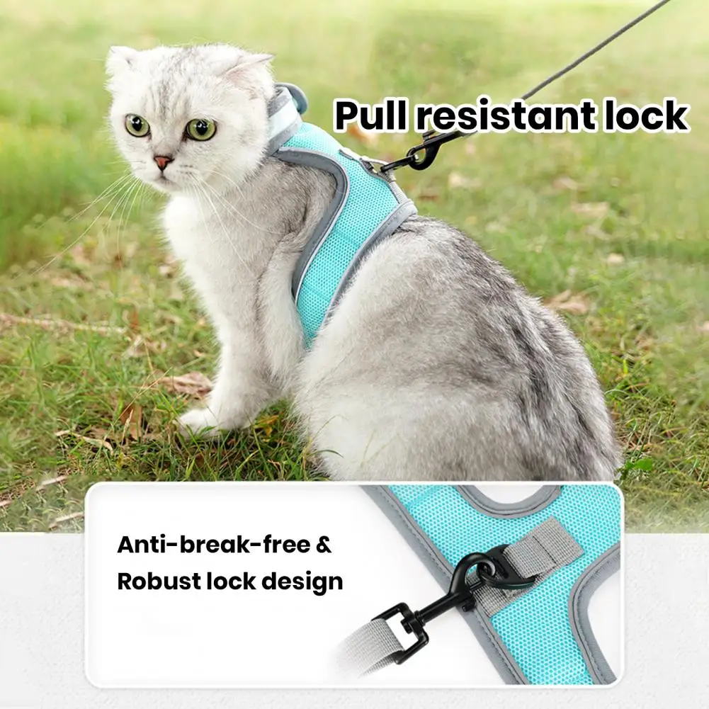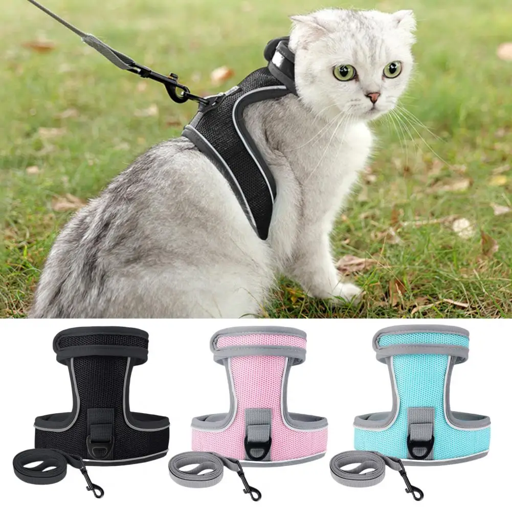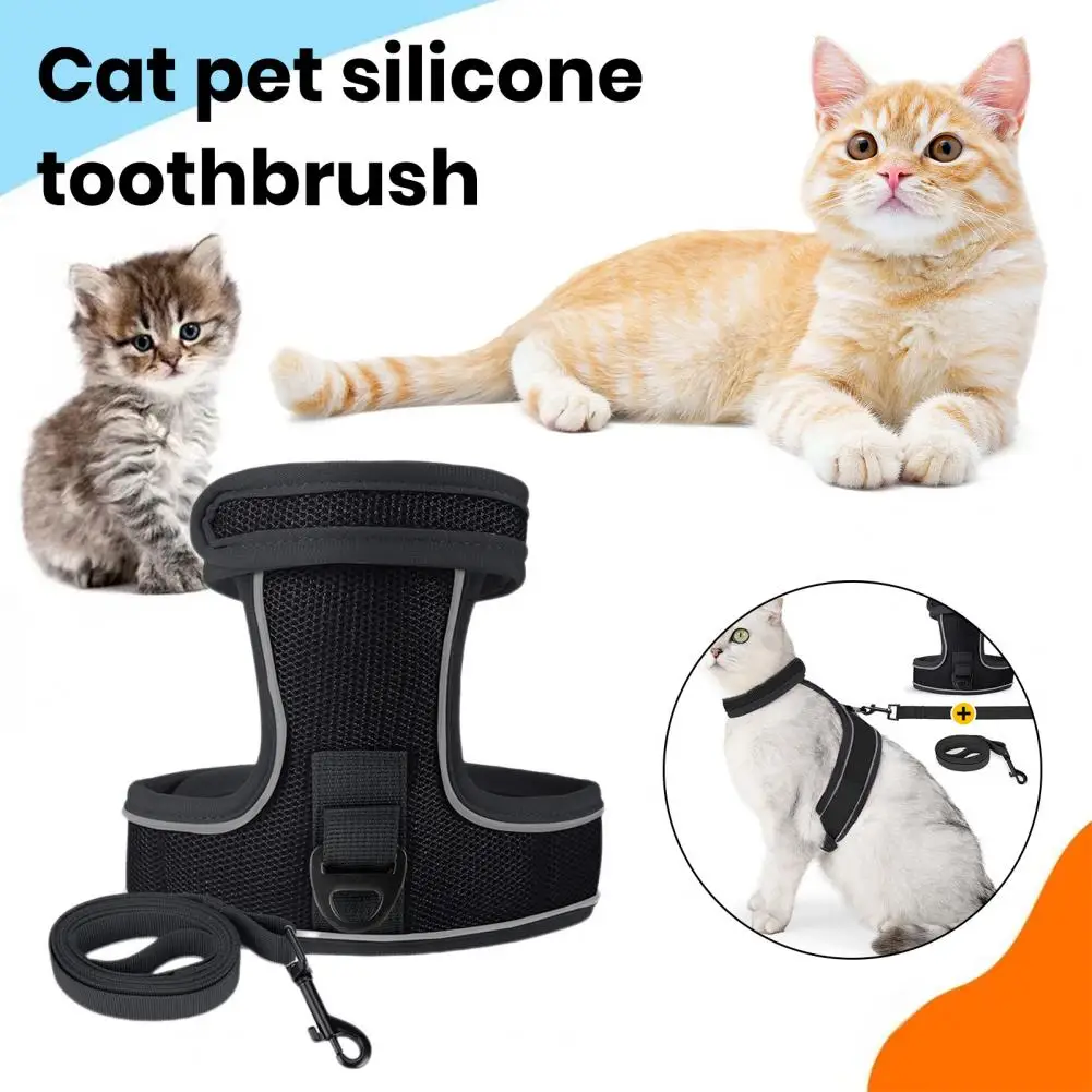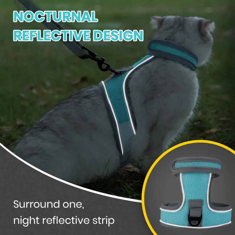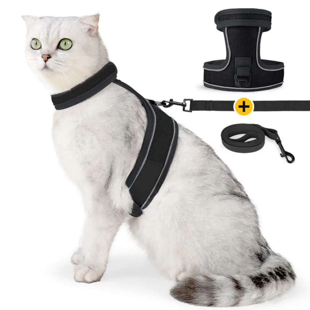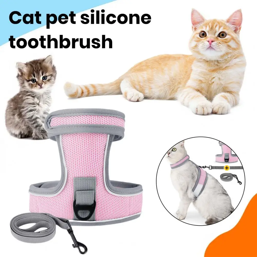 1 Set Pet Leash Adjustable Fastener Tape Reflective Cat Harness And Traction Leash Set for Outdoor Walks
