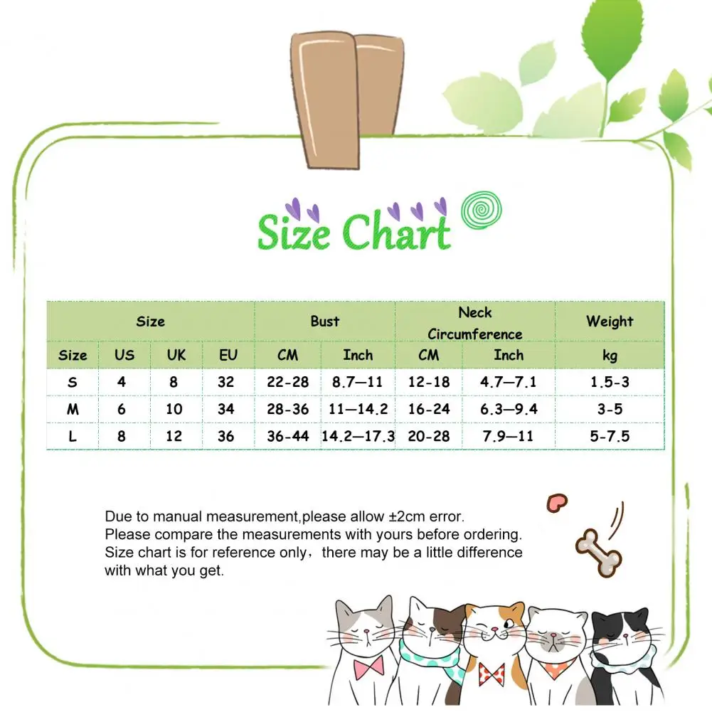 S, Chest: 22cm-28cm/8.66″-11.02″, Neck Circumference: 12cm-18cm/4.72″-7.09″, Suggested Weight: 1.5-3kg (Approx.)