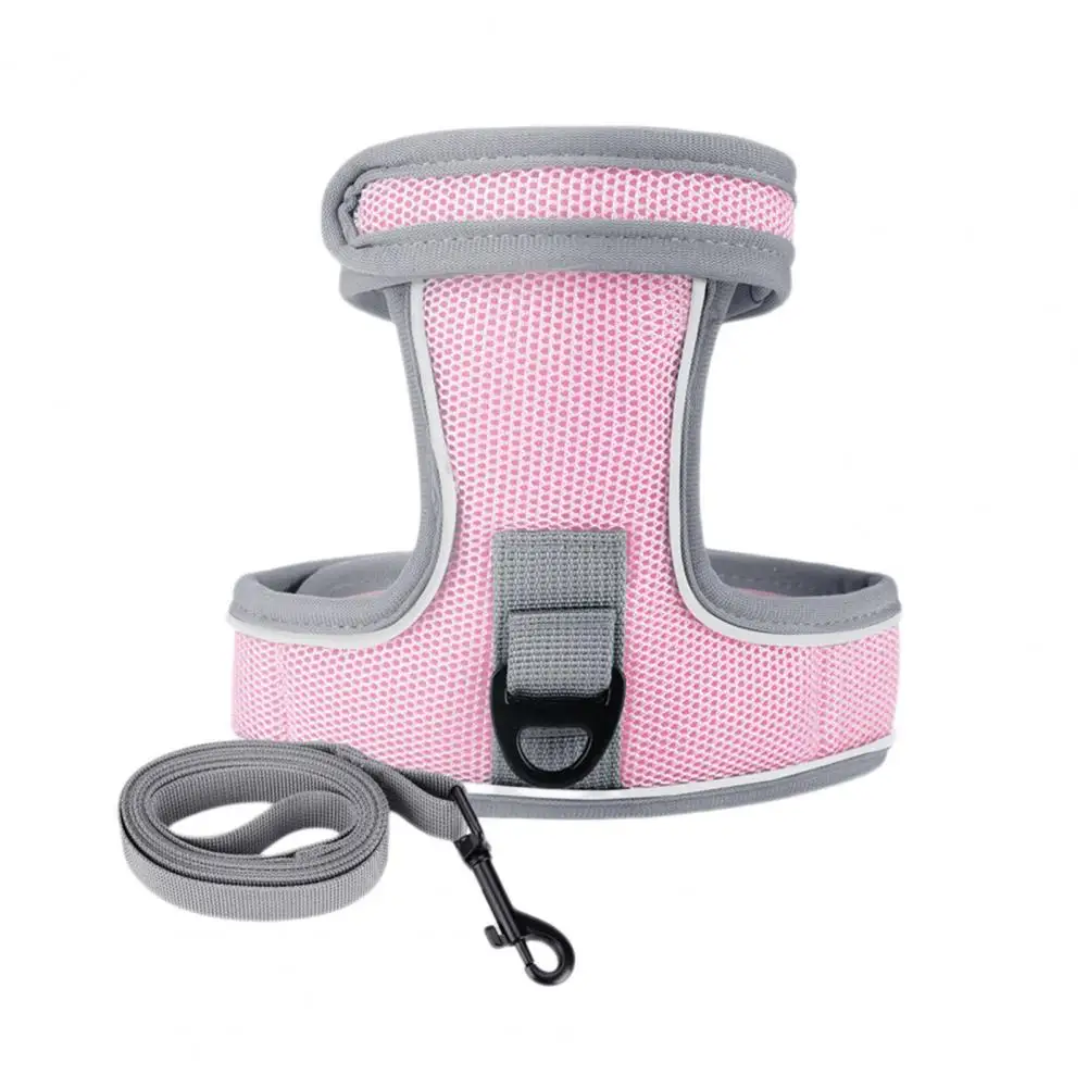 Pet harness is made of soft and light fabric, which is comfortable to wear, does not deform when washed, and has good elasticity and wear resistance.