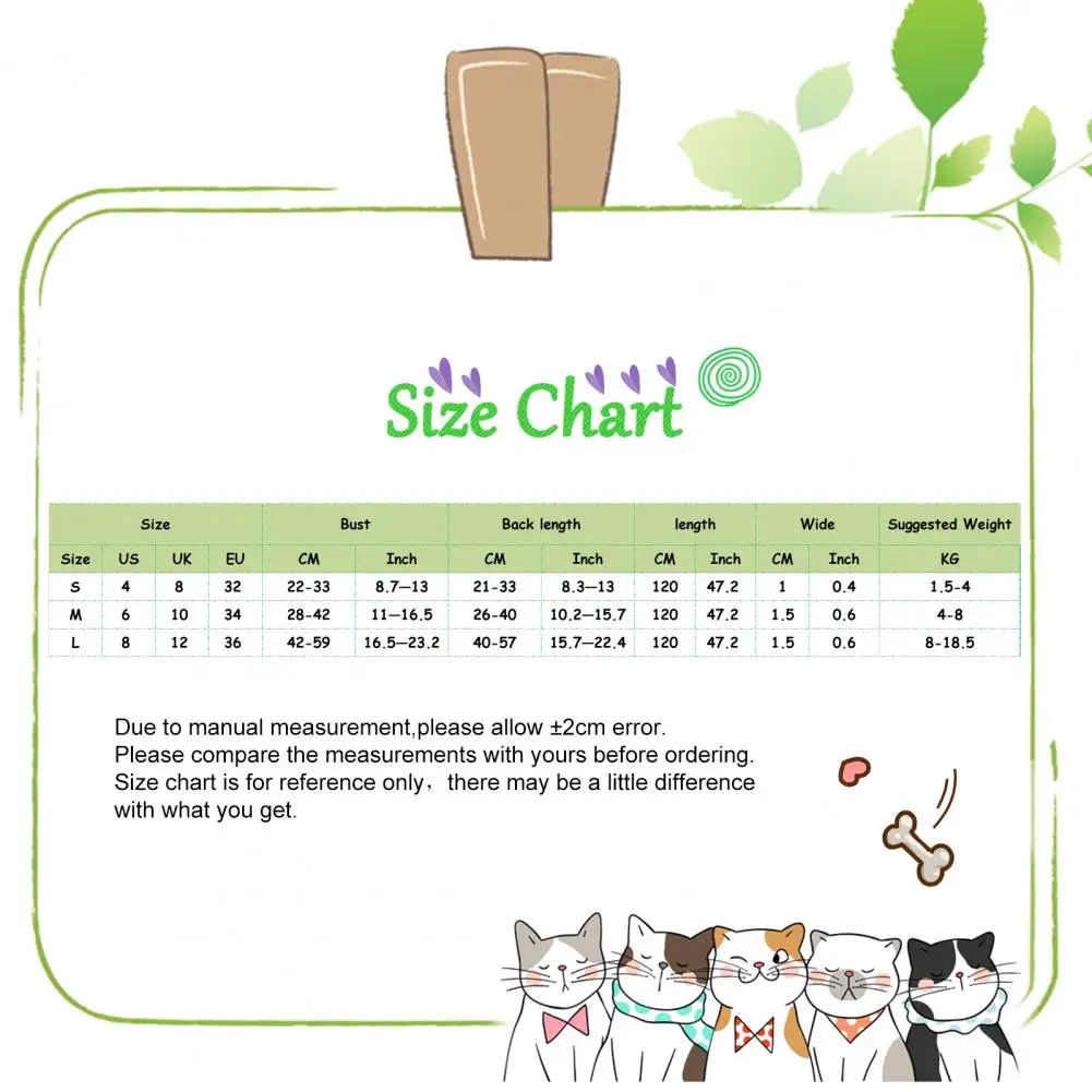 M, L: 120cm/47.24″, W: 1.5cm/0.59″, Chest : 28cm x 42cm/11.02″ x 16.54″, Neck Circumference: 26cm x 40cm/10.24″ x 15.75″ (Approx.)