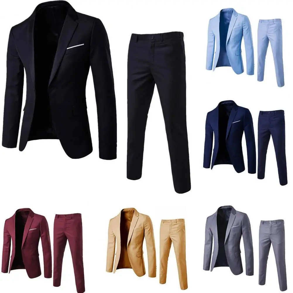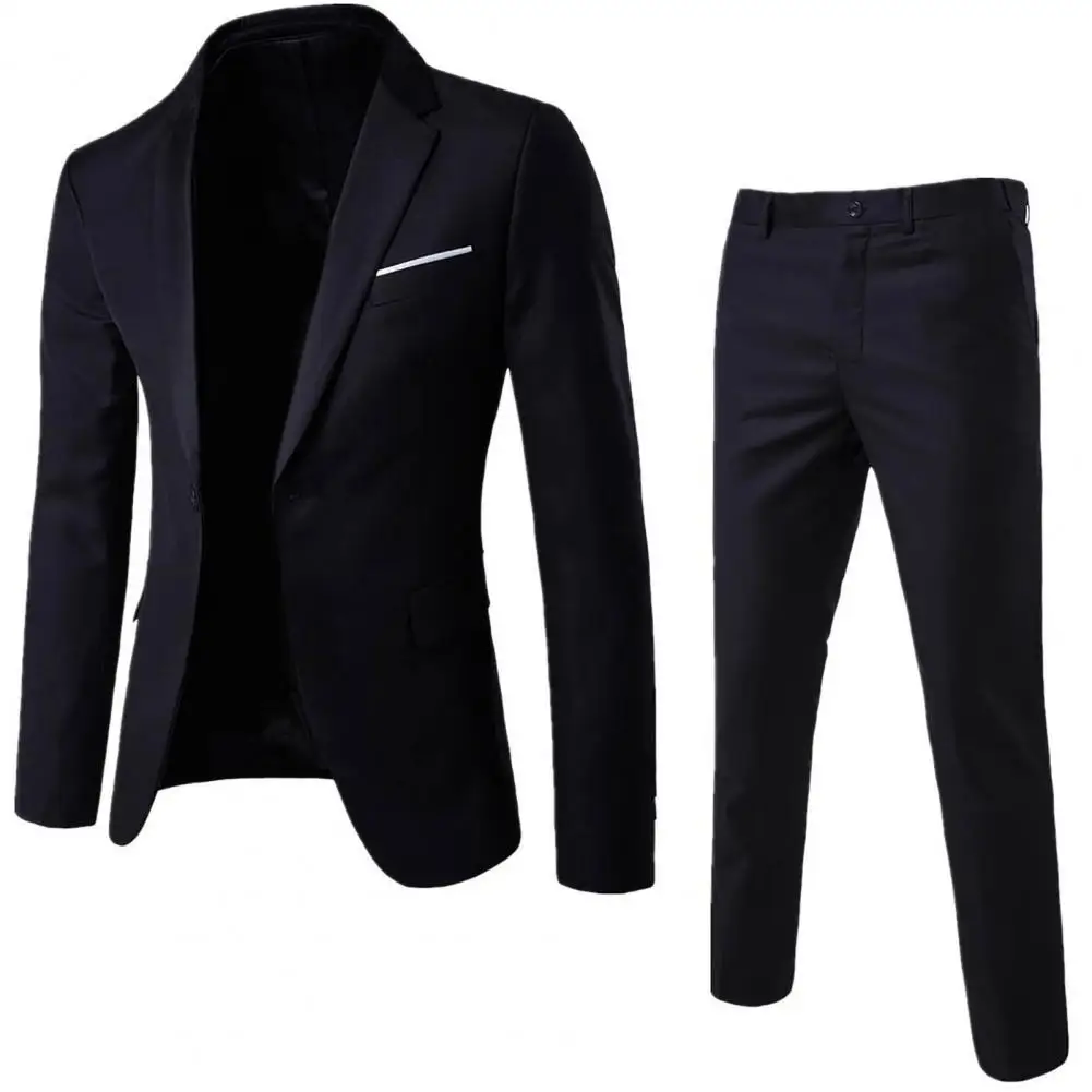1 Set Trendy Men Suit Anti Deformation Formal Suit Turndown Collar Pure Color One Button Suit Set Daily Wear