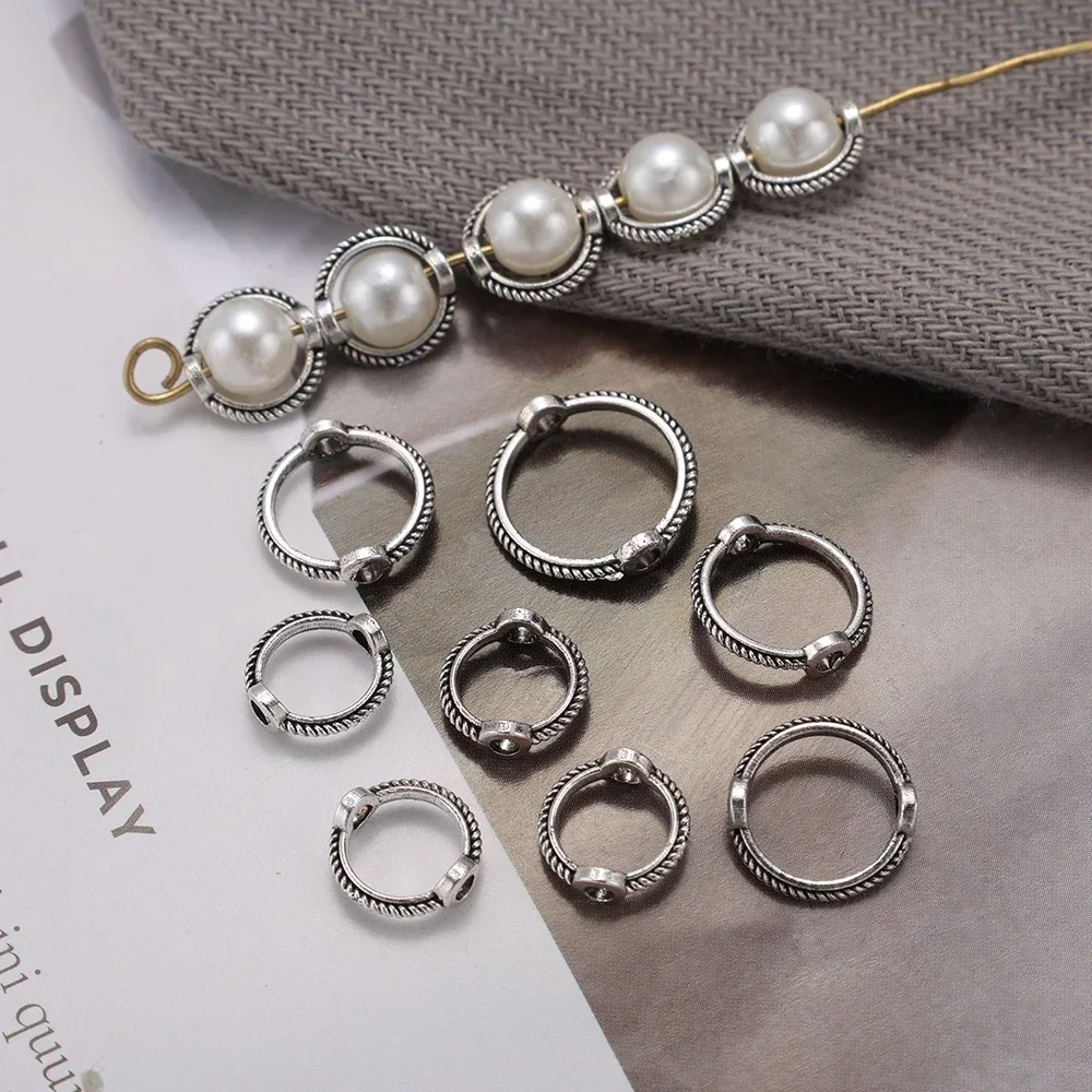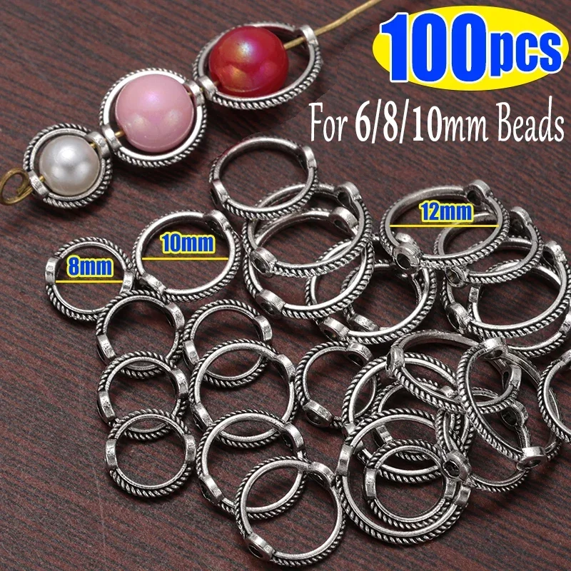 10/100pcs/lot 6 8 10 mm Vintage Retro Round Frame Wrapped Bead Ring Spacer Beads Cap DIY Bracelet for Jewelry Making Accessories