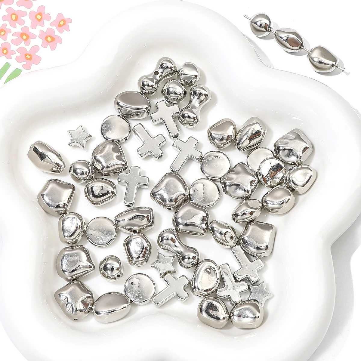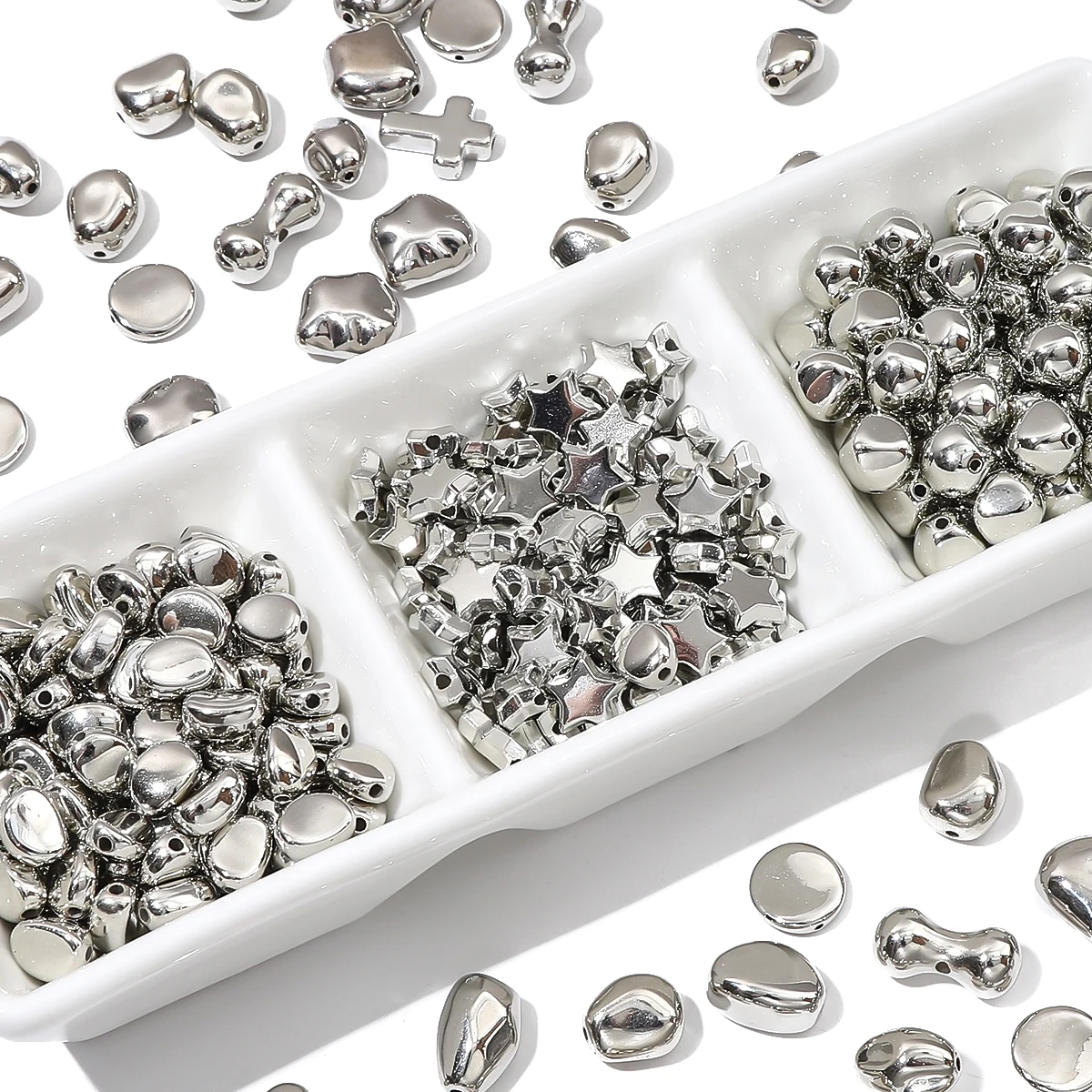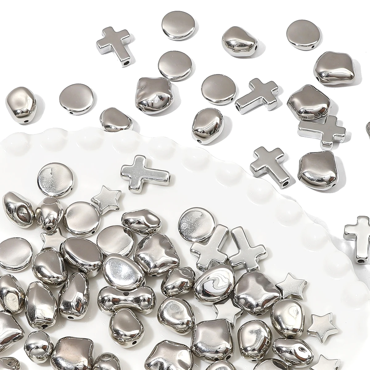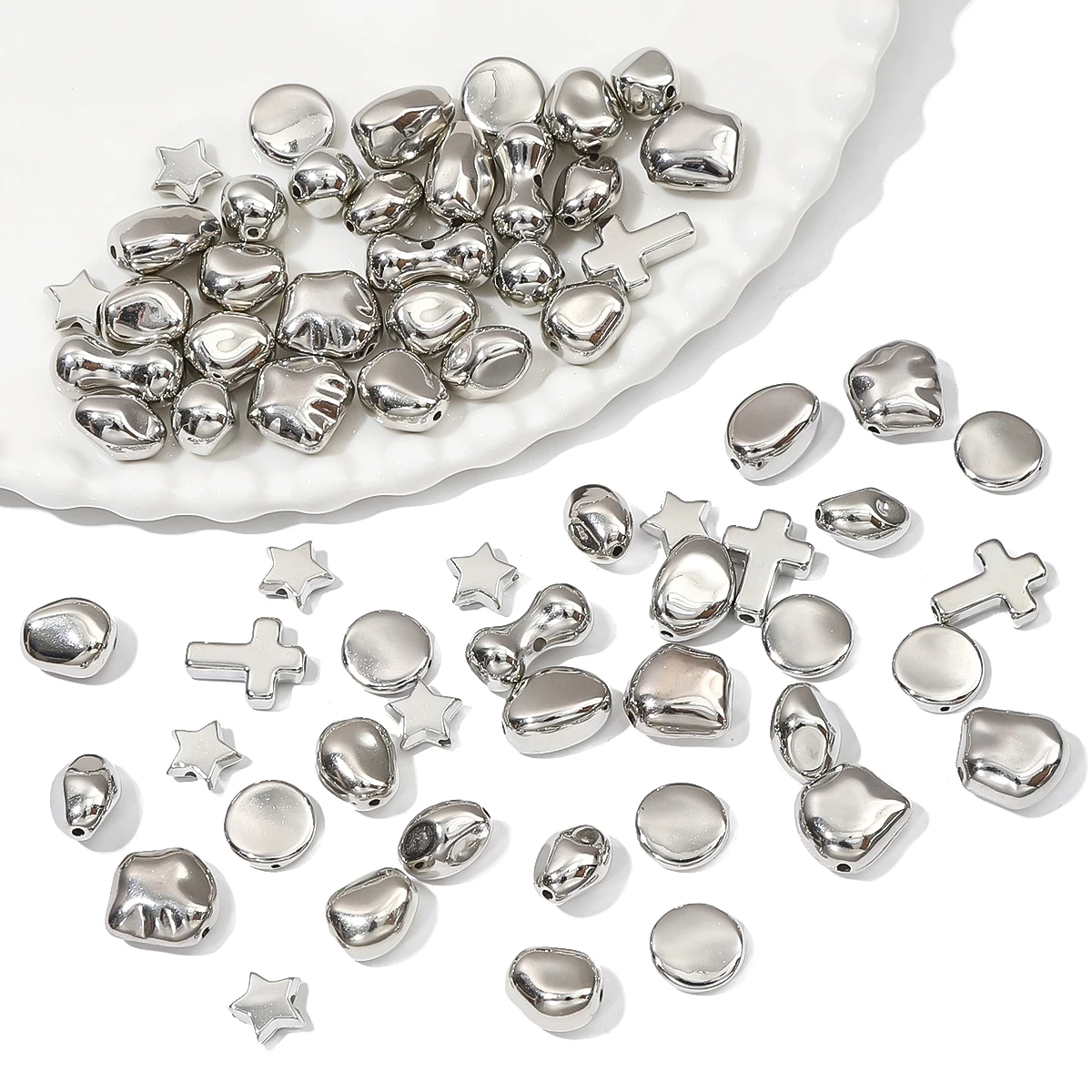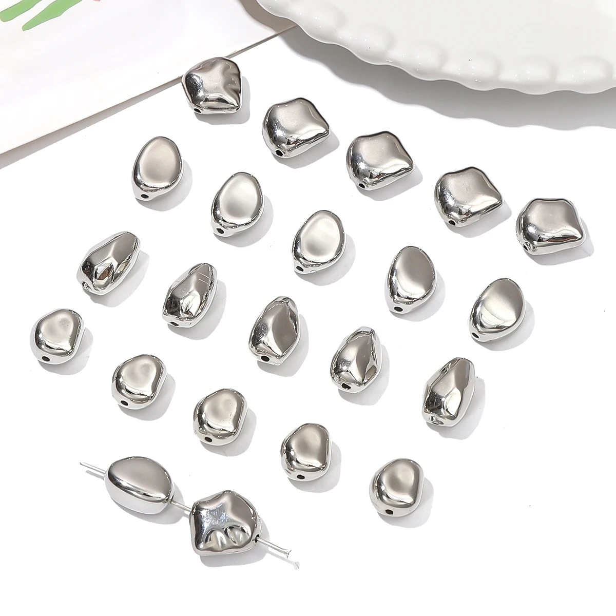 10-20pcs Silver Plated Irregular CCB Beads Loose Spacer Acrylic Beads for DIY Necklace Bracelet Earring Jewerlry Making Findings