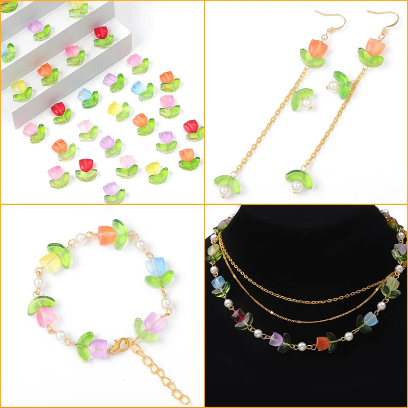 10/20Sets Handmade Colorful Glass Tulip Flower Beads Charm for Earring Bracelet Necklace DIY Jewelry Craft Making Accessories