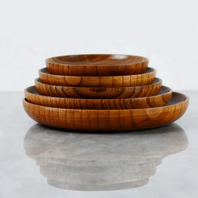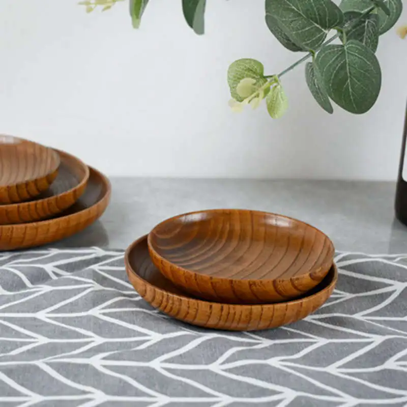 10.5-17.5cm Durable Acacia Wood Dinner Plates Unbreakable Round Wood Plates Fruits Dishes Snacks Dessert Serving Tray Tableware
