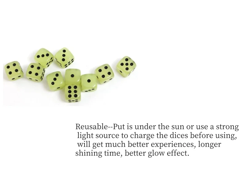 2. This dice is a product that needs to absorb the energy to emit lights , so pls place it under the sunlight or light more often , so that it will continue to emit lights.